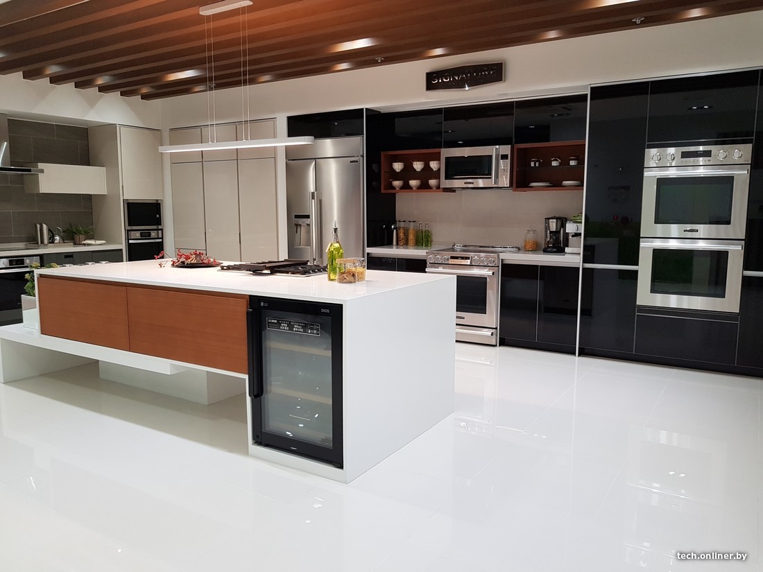 Стараясь удовлетворить стремление соотечественников (и не только) ко всему элитному, в прошлом году LG даже вывела на рынок бренд Signature, который относит к «ультрапремиум-классу». Пока сюда входят OLED-телевизор, стиральная машина TwinWash, климатический комплекс и холодильник. Мы уже видели их в сеульском фирменном магазине компании, а потом присмотрелись поближе в шоу-руме на одной из фабрик в Чханвоне.