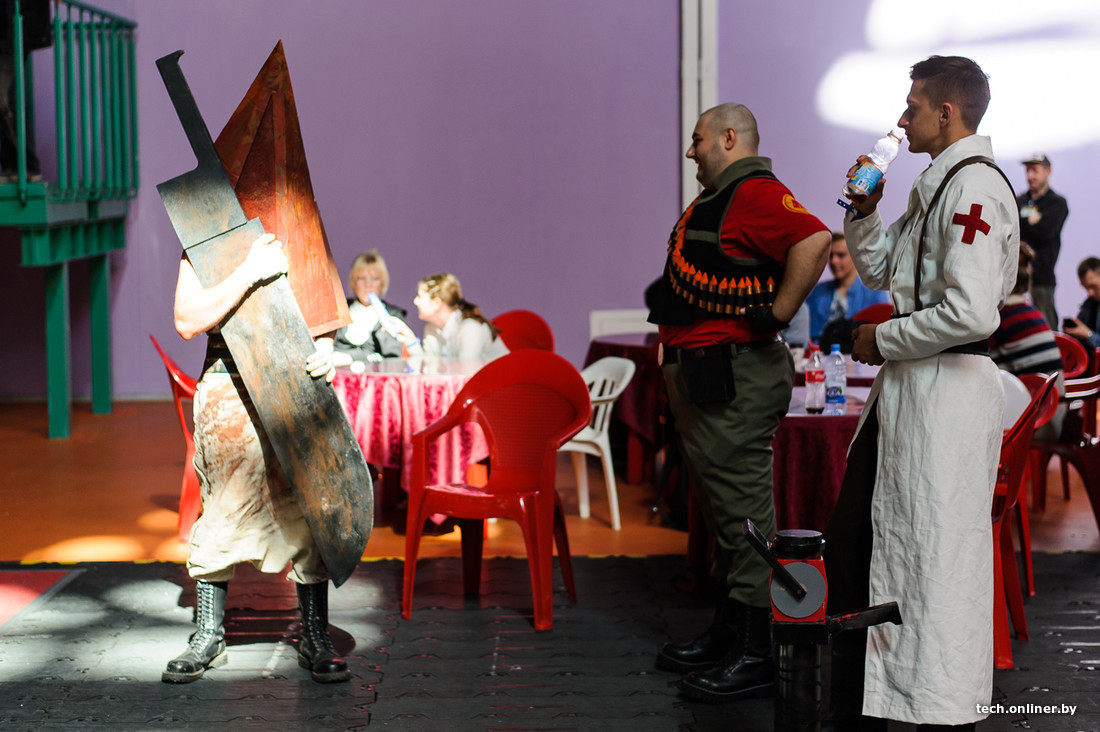 Было заметно, что некоторые костюмы доставляют неудобство своим владельцам, но ради красоты те готовы на все, или как минимум на многое. Кроме того, образы были бы неполными, если просто сменить одежду. Поэтому многие участники фестиваля активно изображали выбранных персонажей, добавляя им тем самым живости. Тот же Пирамидоголовый, например, передвигался не иначе как волоча по полу свой огромный тесак. Но иногда трепетно прижимал его к груди (когда никто не видел).