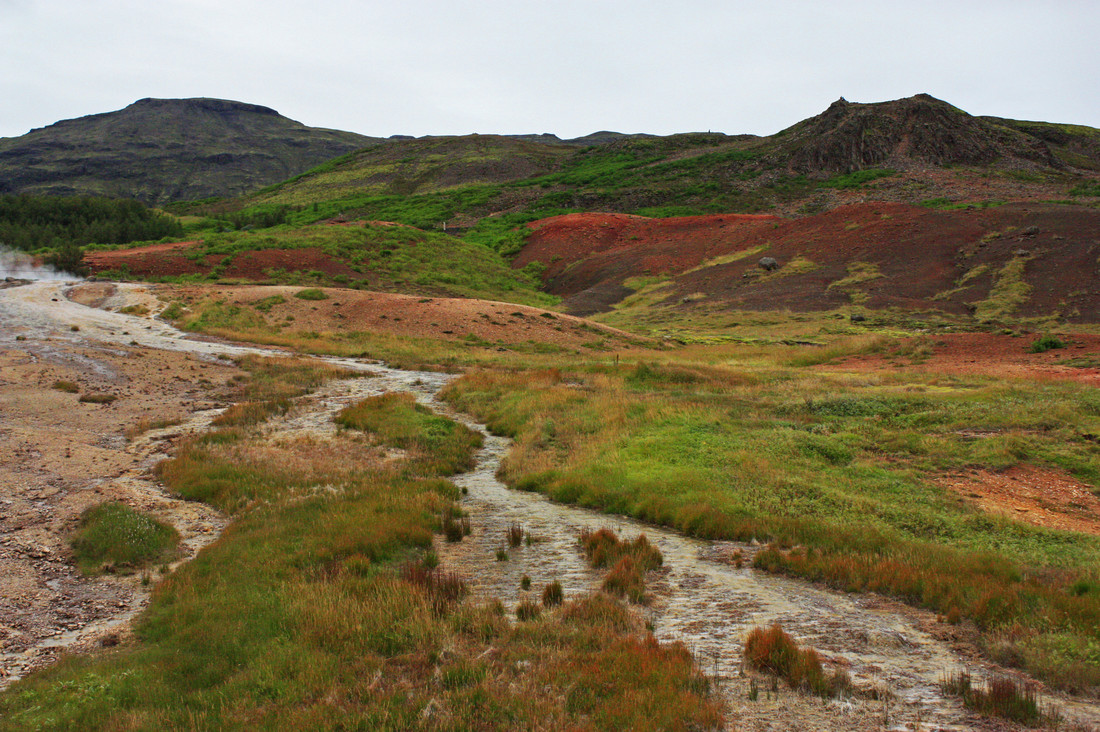 Одно из самых интересных мест в Исландии - Долина гейзеров Хаукадалур. Складывается впечатление, что вся окутанная туманом долина будто тлеет после ужасного пожара. Но настоящее кипение ада скрывается глубоко под землей, на поверхности же виден только белый пар, который то стелется низко над горячими ручьями, то поднимается высоко вверх.