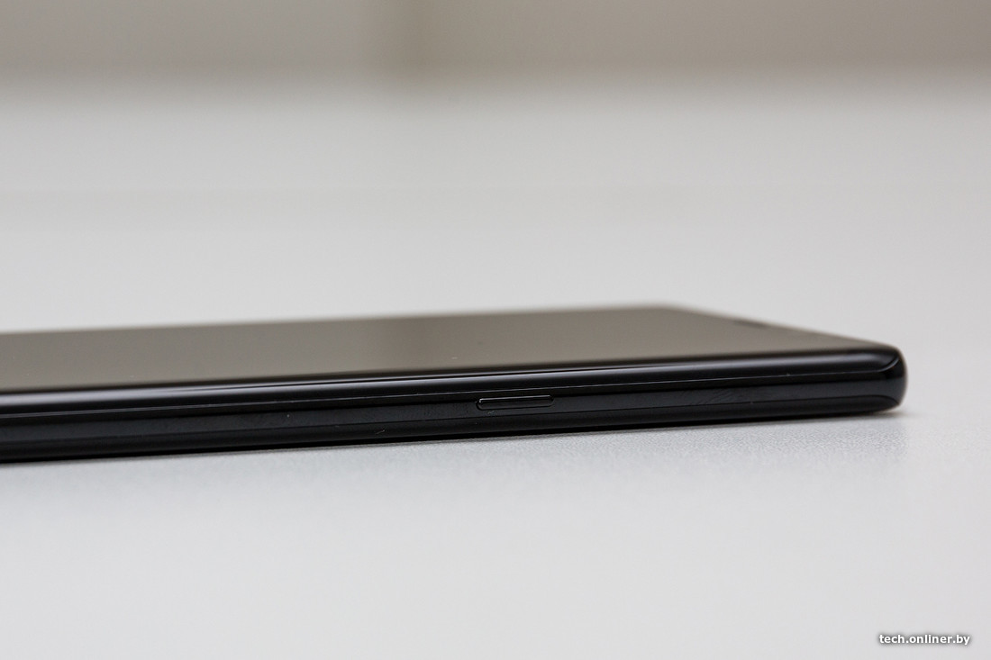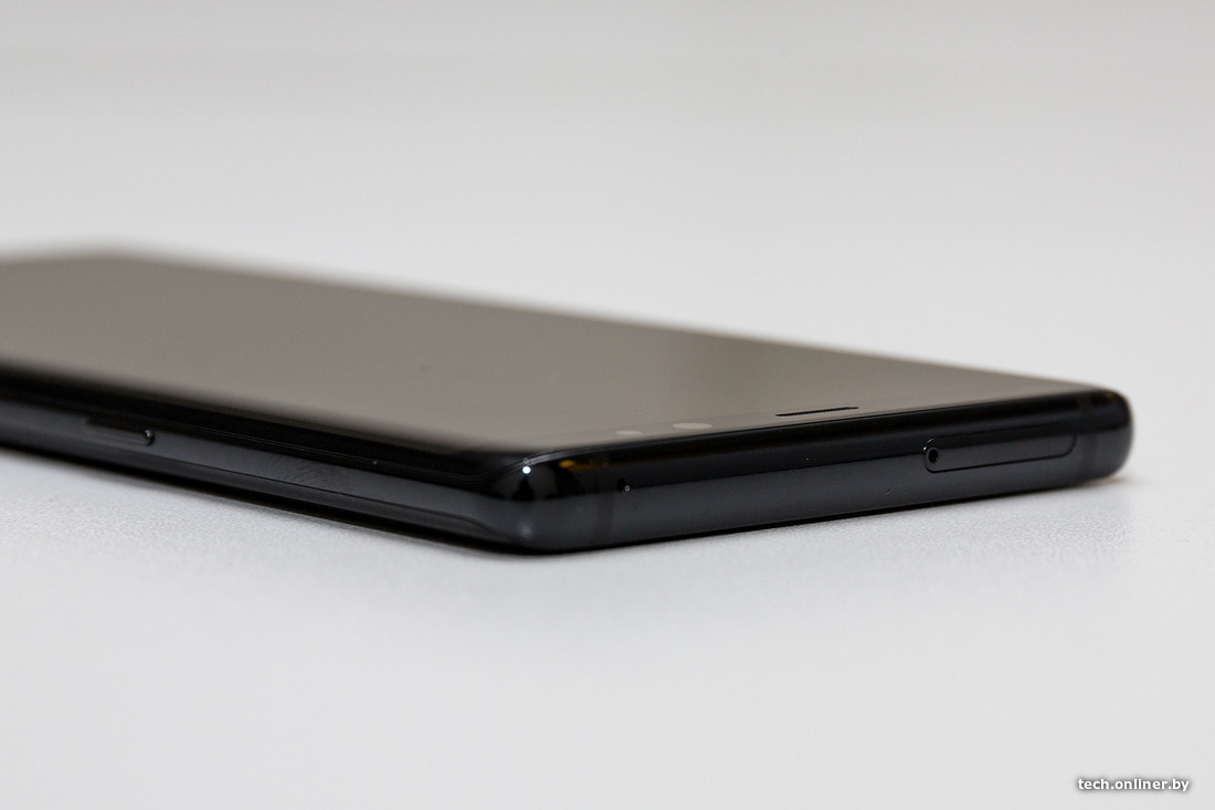 Стеклянный Note 8 приятно лежит в руке, выскользнуть, несмотря на вес, габариты и материал корпуса, не стремится. Если же он находится в руках длительное время, корпус становится не то чтобы скользким, но не слишком приятным на ощупь. Из-за веса и габаритов аппарат не положишь в карман брюк, да и пиджак его выдержит с трудом. В более неформальных штанах появляется еще одна проблема. Так, сесть на низкое сиденье автомобиля или общественного транспорта оказалось затруднительно: смартфон либо неприятно упирается в бедро, либо пытается выбраться наружу.