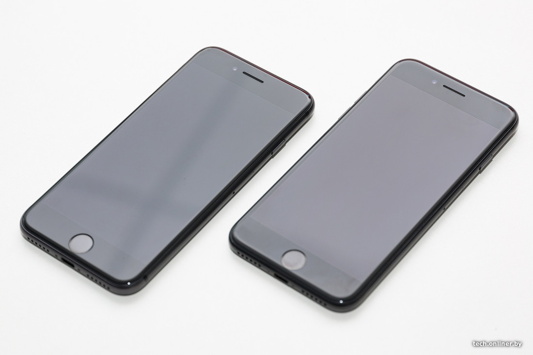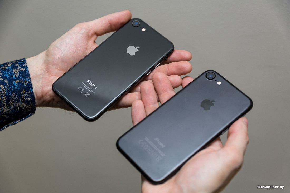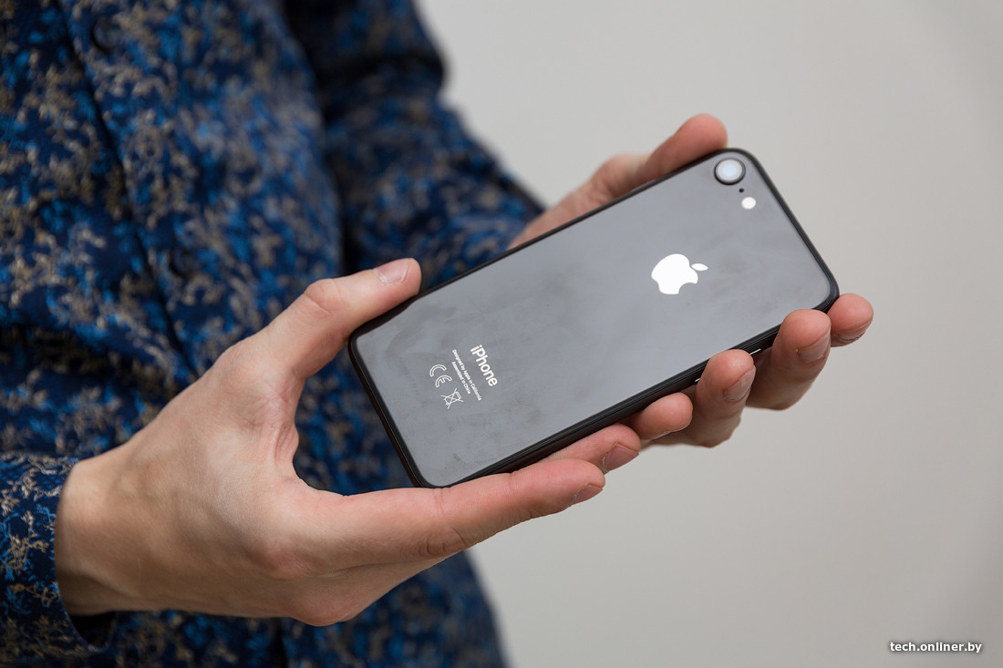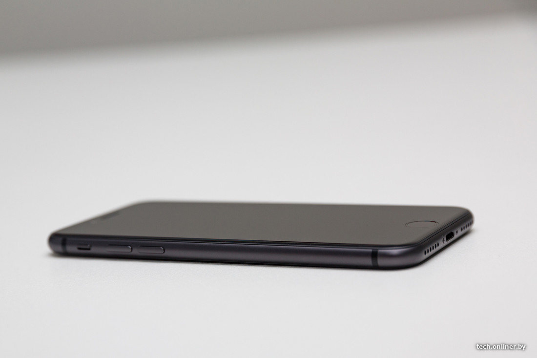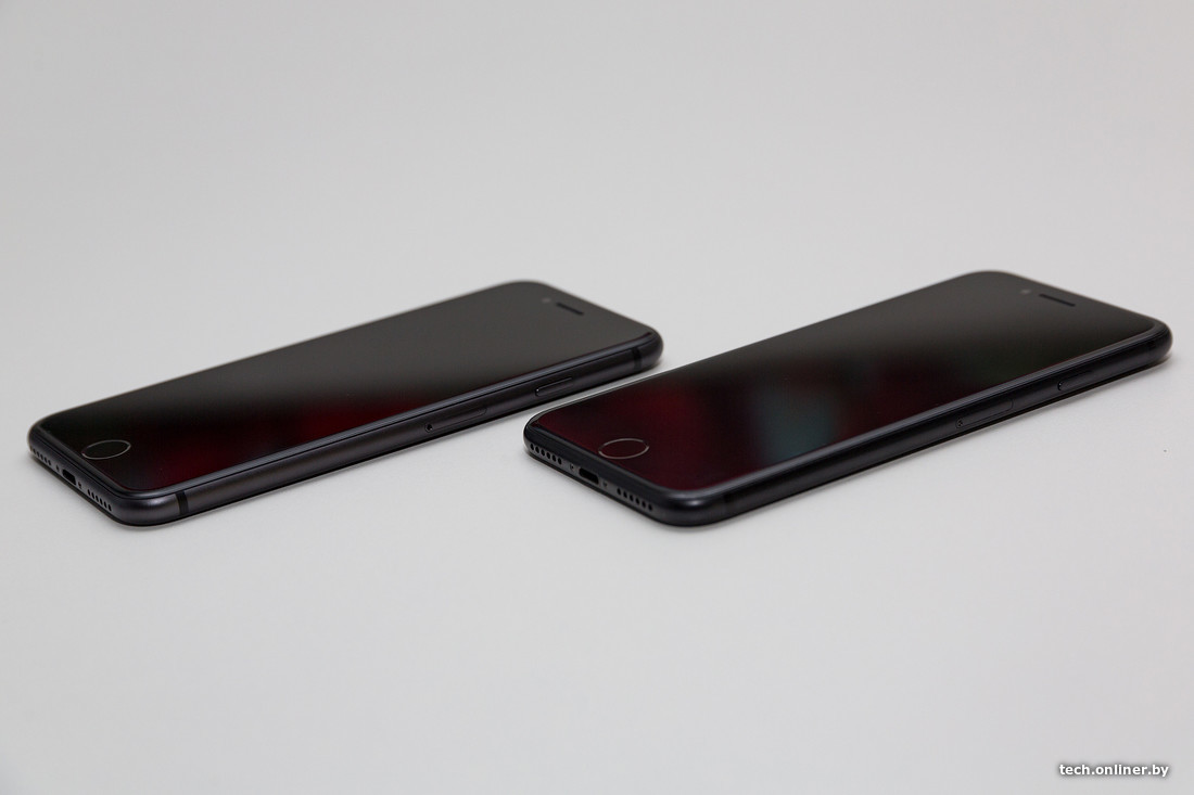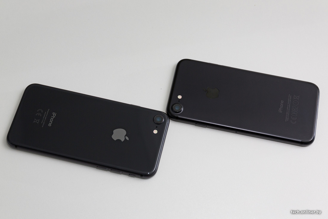 С лицевой стороны смартфон идентичен iPhone 7, зато по бокам и сзади отличия есть. Главное — крышка теперь стеклянная, а не алюминиевая. Цвет окантовки слегка изменился — сейчас он чуть светлее. Раньше боковая грань представляла единое целое с металлической крышкой, теперь же с двух сторон прилеплено стекло.