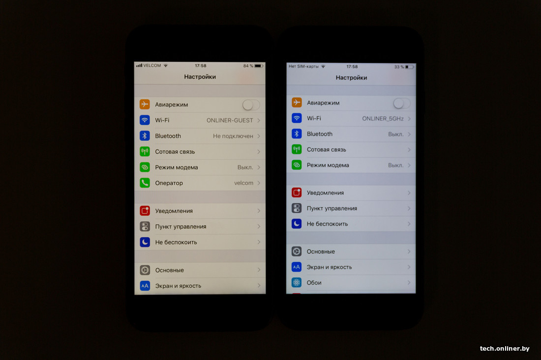 Например, в комнате с «теплым» светом дисплей заметно желтит, но не так сильно, как при включении режима Night Shift. При деактивации режима белый цвет становится более холодным, как в iPhone 7.