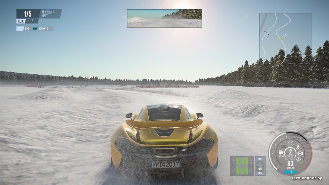 Это одна из немногих игр, в которых нужно привыкать практически к каждому автомобилю. Разбежка классов впечатляет. Несколько «Формул», переднеприводные хот-хетчи в виде Renault Megane RS и «одноклассников», любимые агентом 007 Aston Martin, гиперкары Lamborghini и Ferrari, относительно гражданские Ford Mustang и Chevrolet Camaro и еще пару десятков гоночных болидов из разных классов. Совладал с довольно предсказуемым по поведению Mercedes A45 AMG или чем-нибудь похожим, пересаживаешься на молниеносный McLaren P1 — и понимаешь, что управлять им нужно совершенно иначе. Еще меньше резких движений, плавнее ускорения, и упаси бог переборщить с газом при повернутом руле — 900-сильную машину почти наверняка развернет в ту же секунду, и гонку можно будет считать досрочно завершенной.