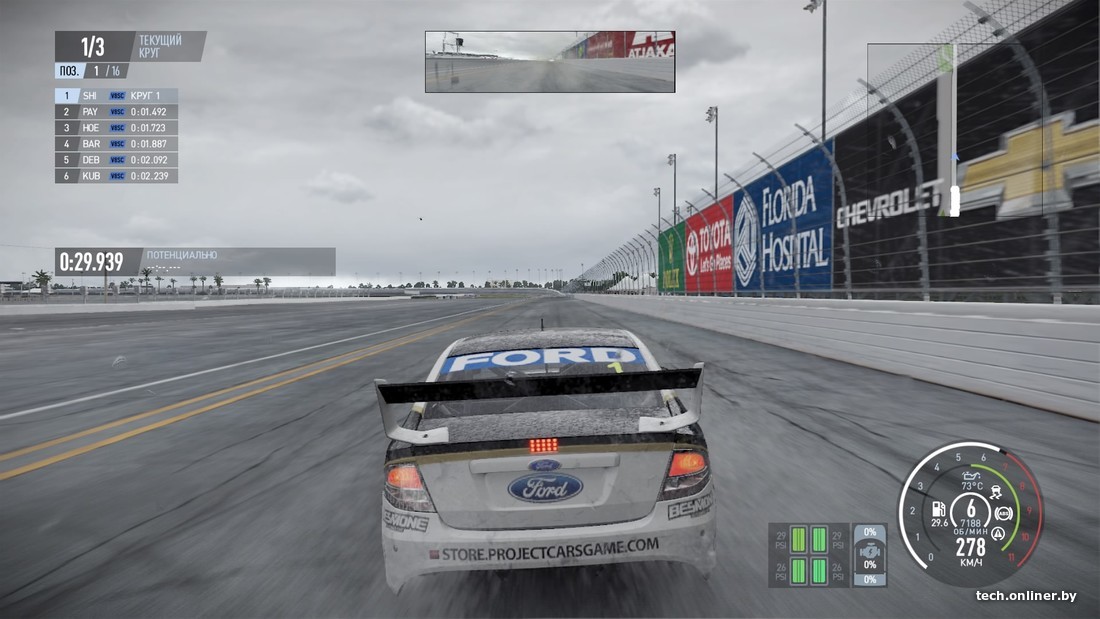 Игра не прощает ошибок, и это нужно сразу понимать. Другие гонки слишком нас разбаловали: дают проехать три круга, и то при аварии разрешается отмотать время назад. Как вам сотня кругов на ночном «Нюрбургринге» при сильнейшем ливне за рулем Ford GT? Здесь все по-взрослому, за любой провинностью сразу следует жесткое наказание. Только краем колеса зацепили поребрик — моментально это чувствуете. Решили слегка срезать путь или допустили столкновение — время круга не засчитано. Project CARS 2 требует серьезной самодисциплины и не терпит дурачества.