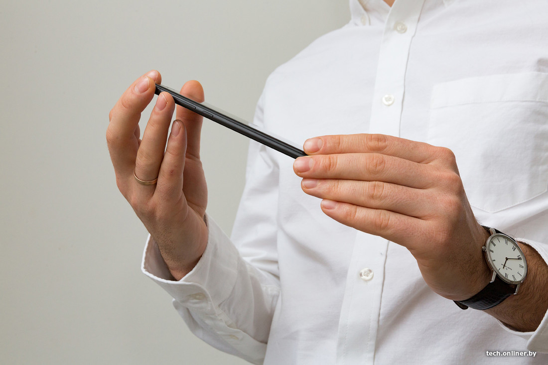 Габариты телефона составляют 152,6 × 74 × 7,6 мм при 5,5-дюймовом экране, вес аппарата — 163 г. Экран имеет соотношение сторон 16:9, то есть это привычный, а не вытянутый прямоугольник.