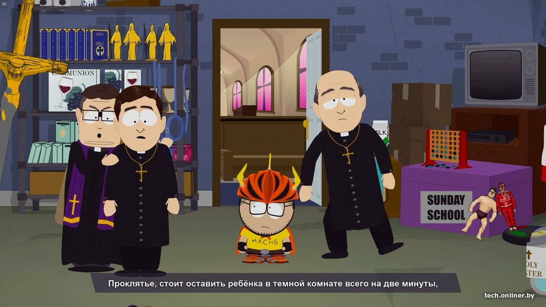 Первым делом уточним, о каком юморе вообще идет речь. «Туалетные» разговоры, диалоги про гендерную принадлежность и сексуальную ориентацию, размышления о физиологических особенностях человека — это обыденные темы для South Park что сериального, что игрового. Особенность в том, что за потоком подобного юмора стоит яркая пародия и высмеивание как общества в целом, так и отдельных его слоев.