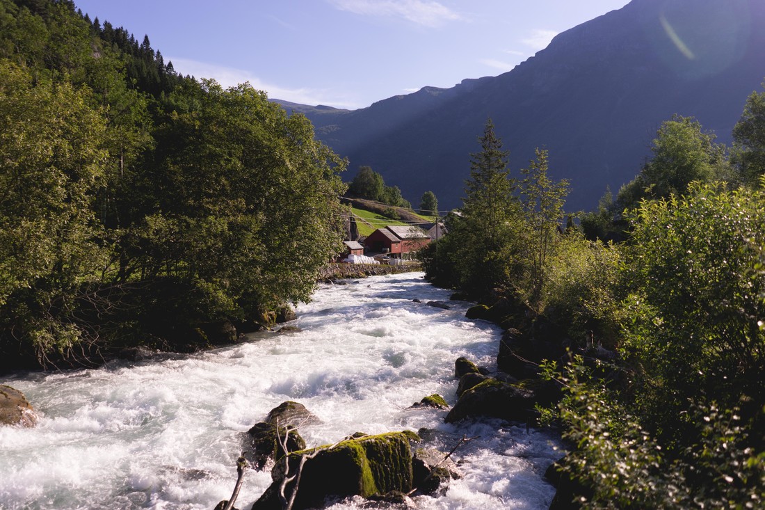 Наше путешествие началось с Бергена, куда прибыл самолет. Город встретил нас солнечной и не по-норвежски жаркой погодой, красивыми домами в скандинавском стиле и уютной, но оживленной атмосферой портового города. Долго не задерживаясь там, двинулись в путь. Первым значимым местом в нашем путешествии была Долина водопадов. Приехав к отправной точке маршрута, на скорую руку поставили палатки, оставили возле них вещи и начали путь. Один из водопадов, кстати, располагался прямо возле нашего лагеря.