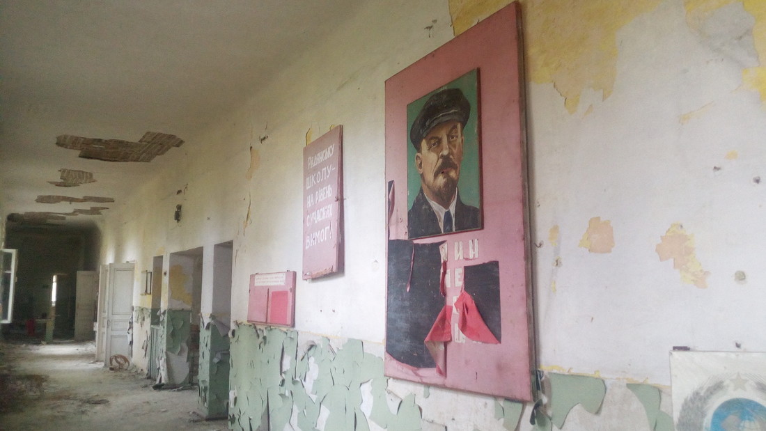 Пройдя к центральной части села, я увидел подозрительно ухоженный дом! Заглядываю за забор… Бабушка моет щавель. Мы немного побеседовали, я подарил ей банку тушенки, набрал воды и пошел по селу дальше. Заглянул в местную школу, которая оставила не самые лучшие впечатления, и двинул на Ильинцы!
