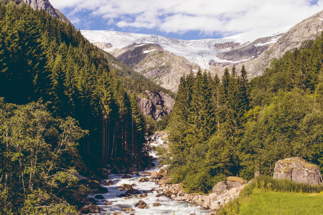 Ледник Фолгефонна — один из самых больших в Норвегии, несмотря на то, что находится в южной части страны. Путь к нему лежит по живописный дороге вдоль горной реки, которая берет начало от этого самого ледника.