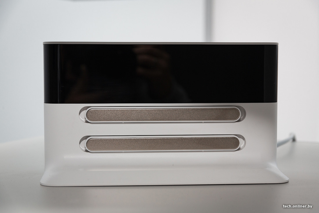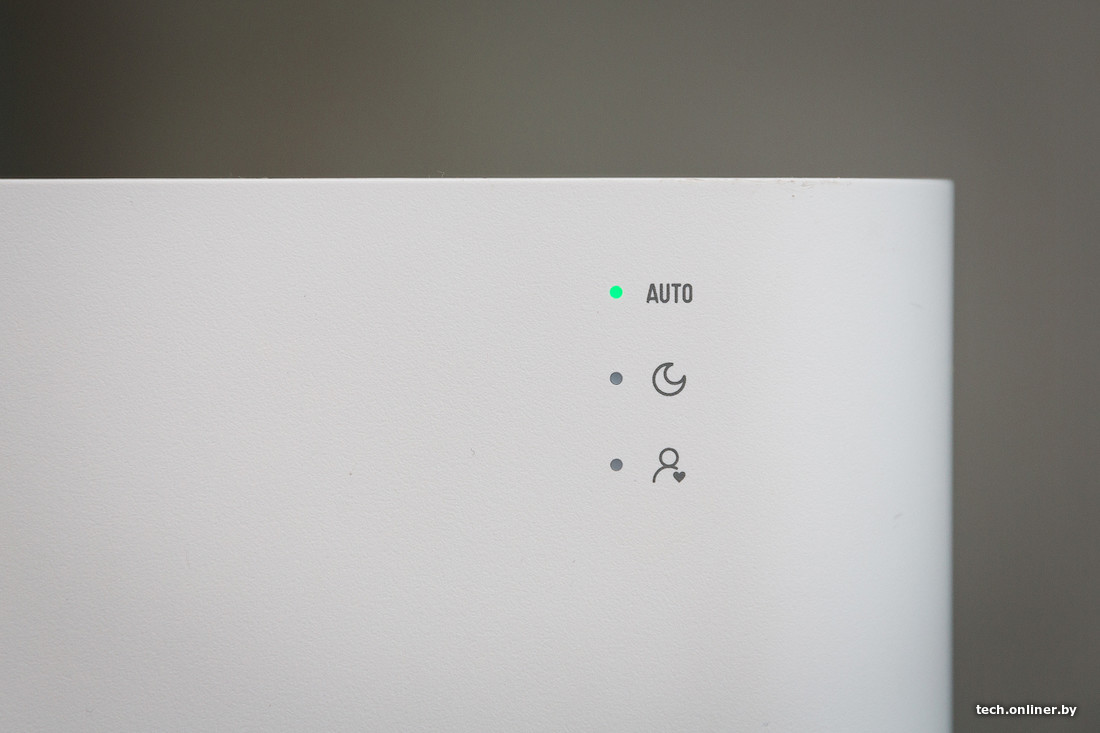 Мобильное приложение информирует о выработке фильтрующего элемента, а также выводит информацию о температуре и влажности в помещении. Очиститель имеет несколько режимов работы: в «ночном», например, устройство практически бесшумно, в «турбо» — заметно гудит.