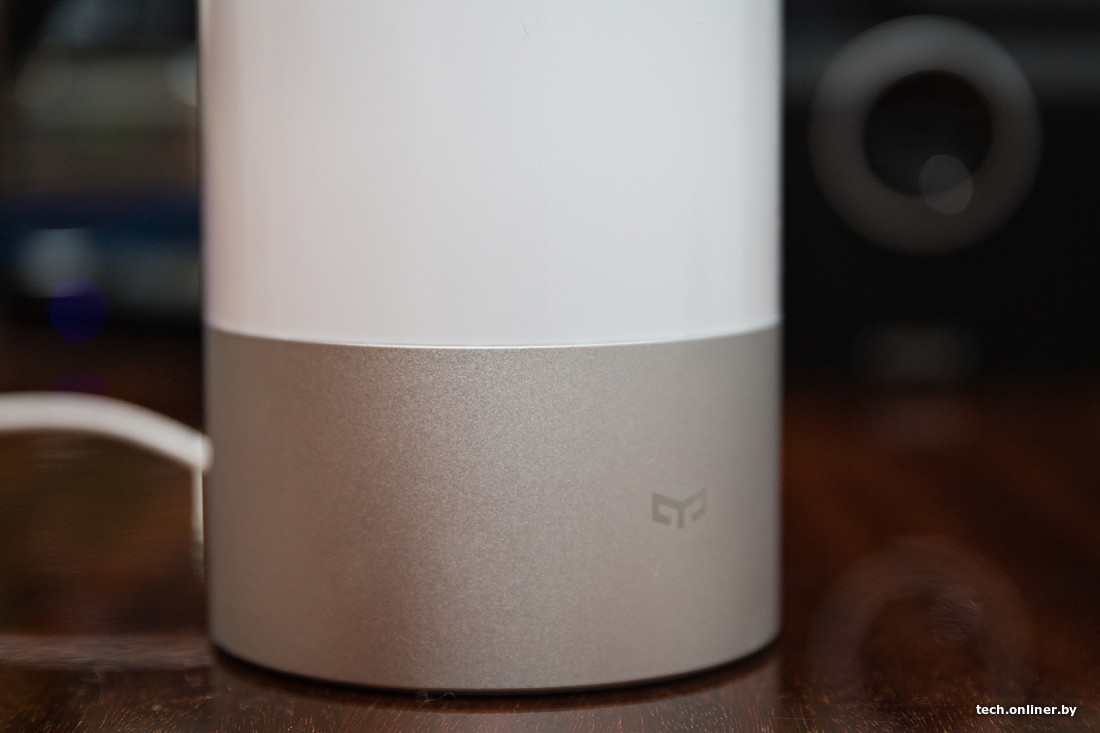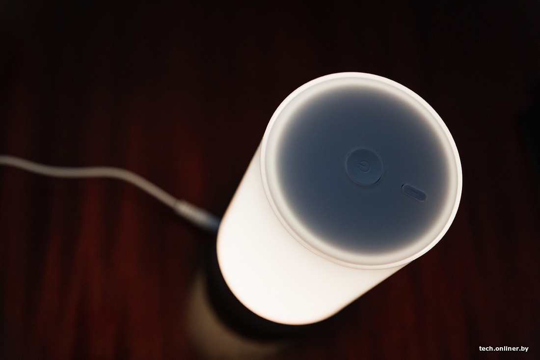 Ночник имеет цилиндрическую форму и интересен сам по себе, без подключения к умному дому, но это негативно сказывается на его возможностях. Через специализированное приложение YeeLight, при помощи которого можно управлять и другими источниками света, пользователь задает цвет свечения, интенсивность и режим (одноцветный или плавная смена). На верхней панели имеются две физические кнопки — включения и переключения режимов. Яркость регулируется с помощью сенсорной поверхности там же: круговые движения по ней в одну сторону увеличивают интенсивность, в другую — уменьшают.