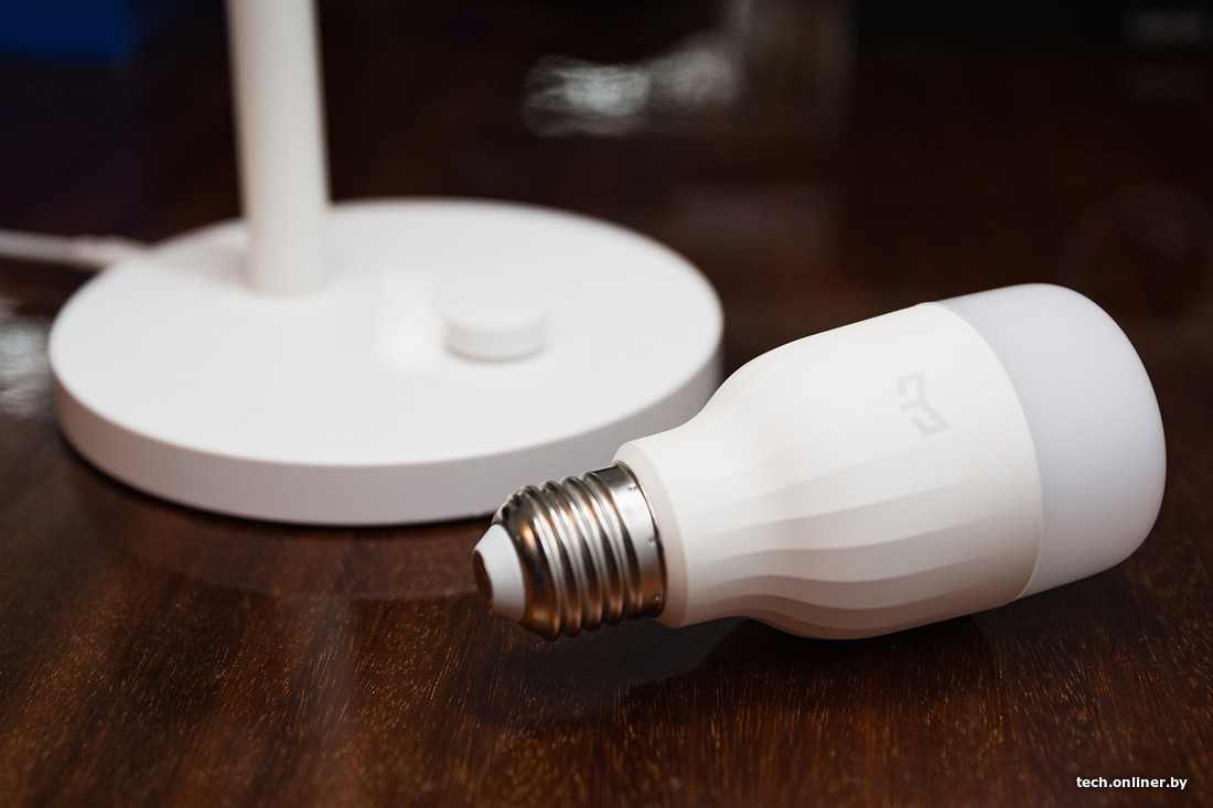 Вкручивающаяся лампа — самый простой элемент из этой троицы, но тоже требующий настройки через Wi-Fi (со стороны выглядит очень забавно). Для этого понадобится пять раз щелкнуть выключателем света, воскликнуть «Люмос Максима!», после чего Yeelight LED (в нашем случае — с белым светом) заработает, подхватив установки сети через уже настроенное приложение.