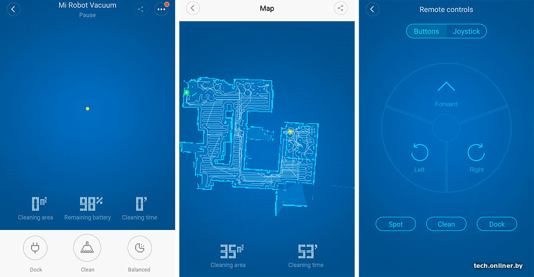 При включении робот создает виртуальную карту помещения, на которой затем фиксирует свое передвижение, а также места, оказавшиеся недоступными. Поле деятельности пылесоса можно ограничить магнитной лентой, которой в комплекте нет. Она выступает виртуальной стеной, границы которой устройство не преодолеет. Ленту можно укладывать под некоторые типы покрытий.