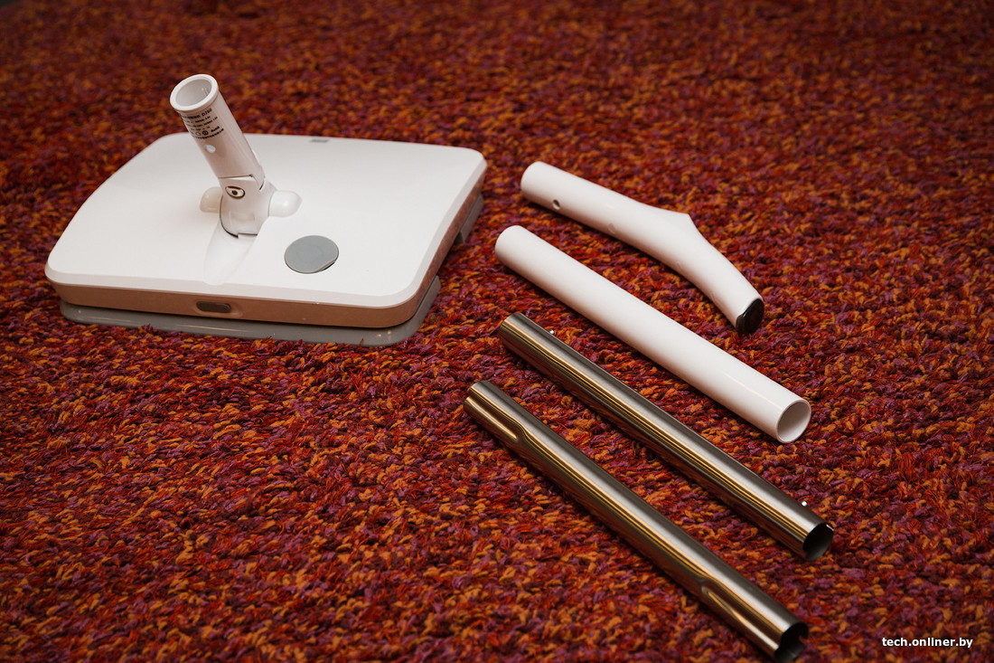 И наконец — электрошвабра. После распаковки девайс со сборной ручкой необходимо подключить к локальному Wi-Fi для обновления и настройки. Нет, на самом деле это лишнее: мы решили разбавить умные устройства чем-то хорошо знакомым, «глупым».