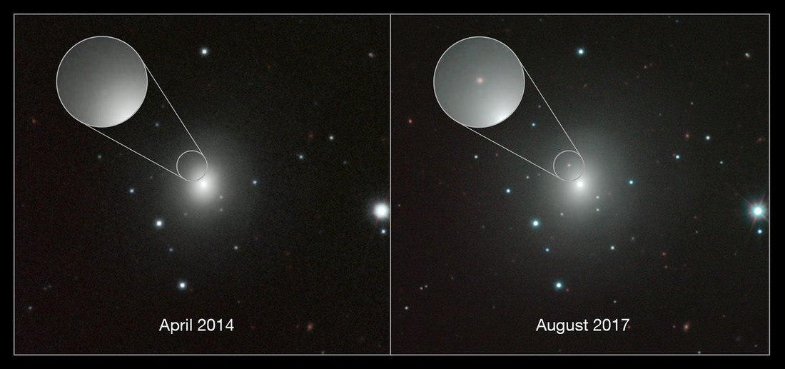 Космические исследования не только крайне сложные, но и крайне долгие. Анализ данных, полученных космическими аппаратами, может занимать годы и даже десятилетия, а новые открытия могут подстерегать исследователей в каждом фото, строчке и цифре. Миссия ESA Rosetta завершилась 30 сентября 2016 года, но команда миссии и многочисленные исследователи продолжают радовать нас открытиями, связанными с данными, полученными этим космическим аппаратом. На фотографии, опубликованной ESA 26 октября 2017 года, мы можем видеть гейзер, как фонтан выбрасывающий 18 килограммов кометного вещества в секунду в космос. Благодаря аппарату Rosetta мы уже видели, что на кометах бывают гейзеры и даже обвалы породы, но это фото стало особенным по причине своего контекста. Во время извержения аппарат смог собрать образцы выброшенного вещества и проанализировал его состав. Изучение комет крайне важно для всего человечества: возможно, именно они стали источником воды и даже «кирпичиков жизни» на Земле в молодой Солнечной системе.