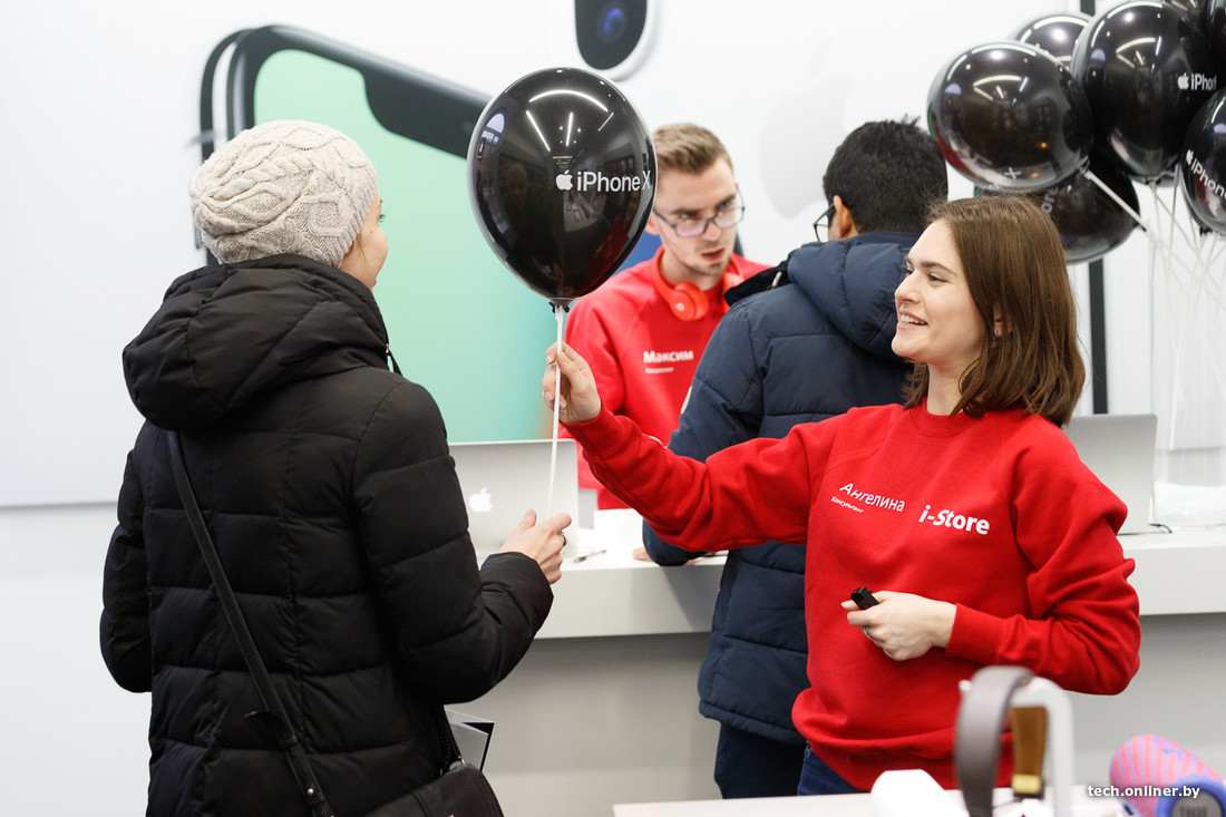 На открытии i-Store, салона со статусом Apple Premium Reseller, не было ни очередей, ни ажиотажа. Это при том, что iPhone X предлагают даже в рассрочку. Ни она, ни призывное праздничное оформление, ни томный яблочный гаджет сограждан заманить не смогли. В магазин зашел лишь один человек — иностранец, решившийся на покупку младшей версии iPhone X в нашей стране. Представители i-Store нас при этом заверили, что на самом деле ажиотаж-де был, но в онлайне, где люди оставили множество предзаказов.