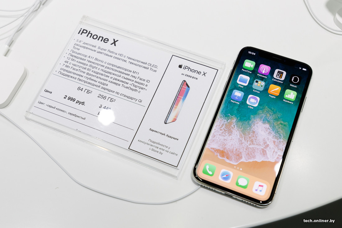 Сегодня в Беларуси стартуют официальные продажи топовых смартфонов от Apple. Стоимость, мягко говоря, немаленькая. Так, за модель iPhone X с 64 ГБ памяти придется отдать 3000 рублей, а версия с 256 ГБ обойдется в 3450 рублей. Видимо, высокая цена сыграла свою роль — на открытии магазинов очередей за новинкой не наблюдалось.