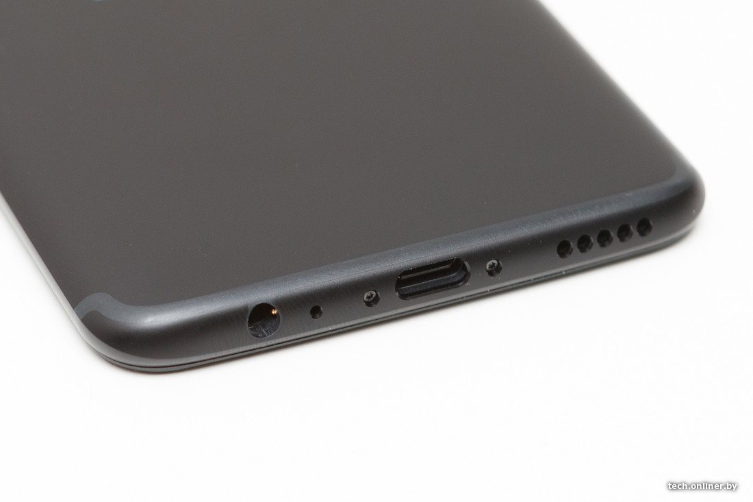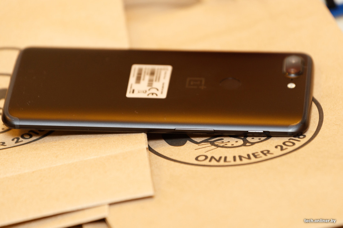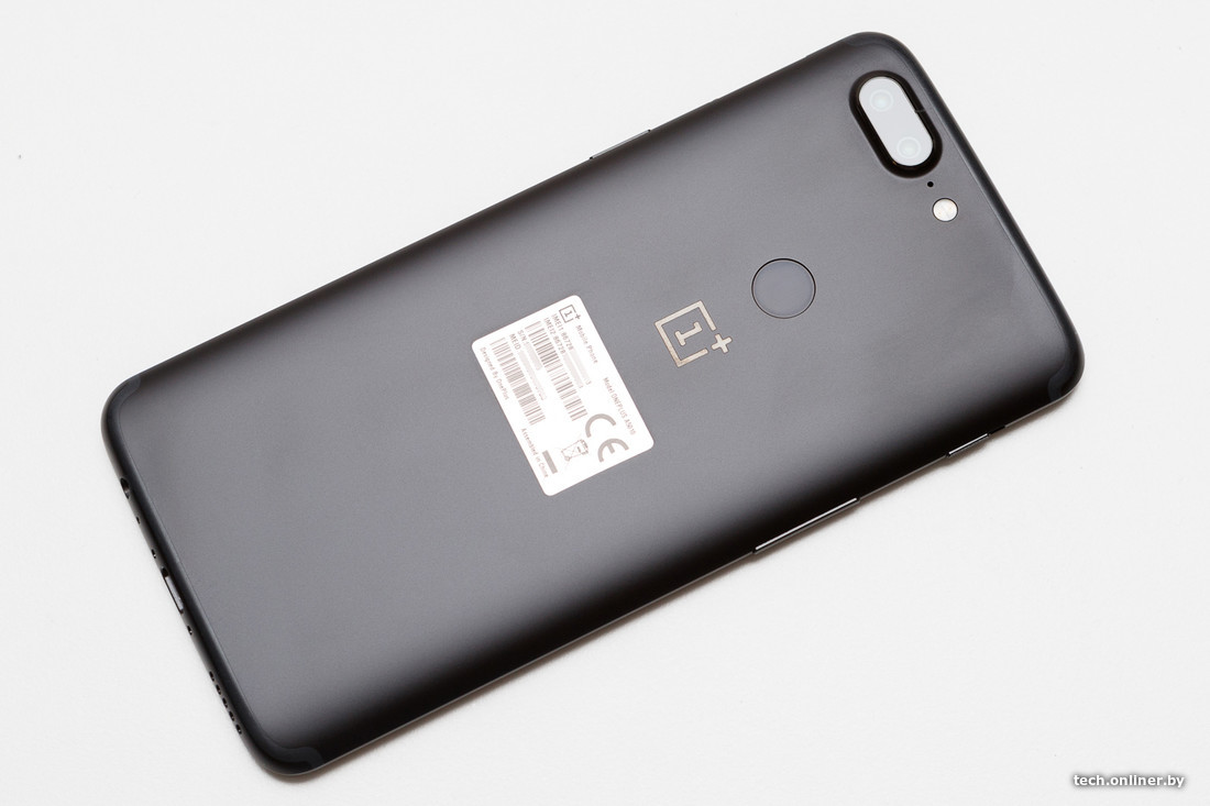 С лицевой панели исчезла кнопка «Домой» со встроенным сканером отпечатков пальцев. Теперь дактилоскопический сенсор находится на задней крышке. Он разместился далеко от двойного фотомодуля, поэтому случайно задеть последний пальцами нельзя. Рядом с камерой — отверстие дополнительного микрофона и двойная LED-вспышка. Камера находится на пьедестале, как и в случае с OnePlus 5.