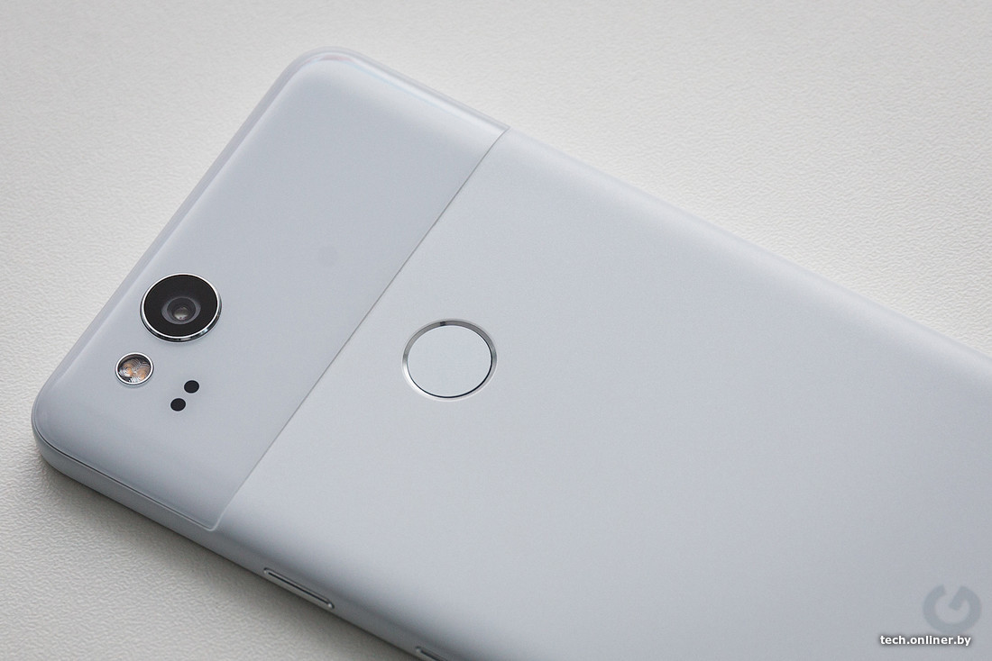 На задней панели разместился сканер отпечатков пальцев, который настроился как-то слишком быстро (если сравнивать с конкурентами). Алгоритм и «железо» срабатывают моментально. Для некоторых дактилоскопических сенсоров характерна проблема, связанная со считыванием рисунка с влажных кончиков пальцев — низкая эффективность проявляется в жару или дождь, например. Рассматриваемый Pixel 2 справился с задачей в 9 случаях из 10, не ругаясь на «несанкционированные» части тела.