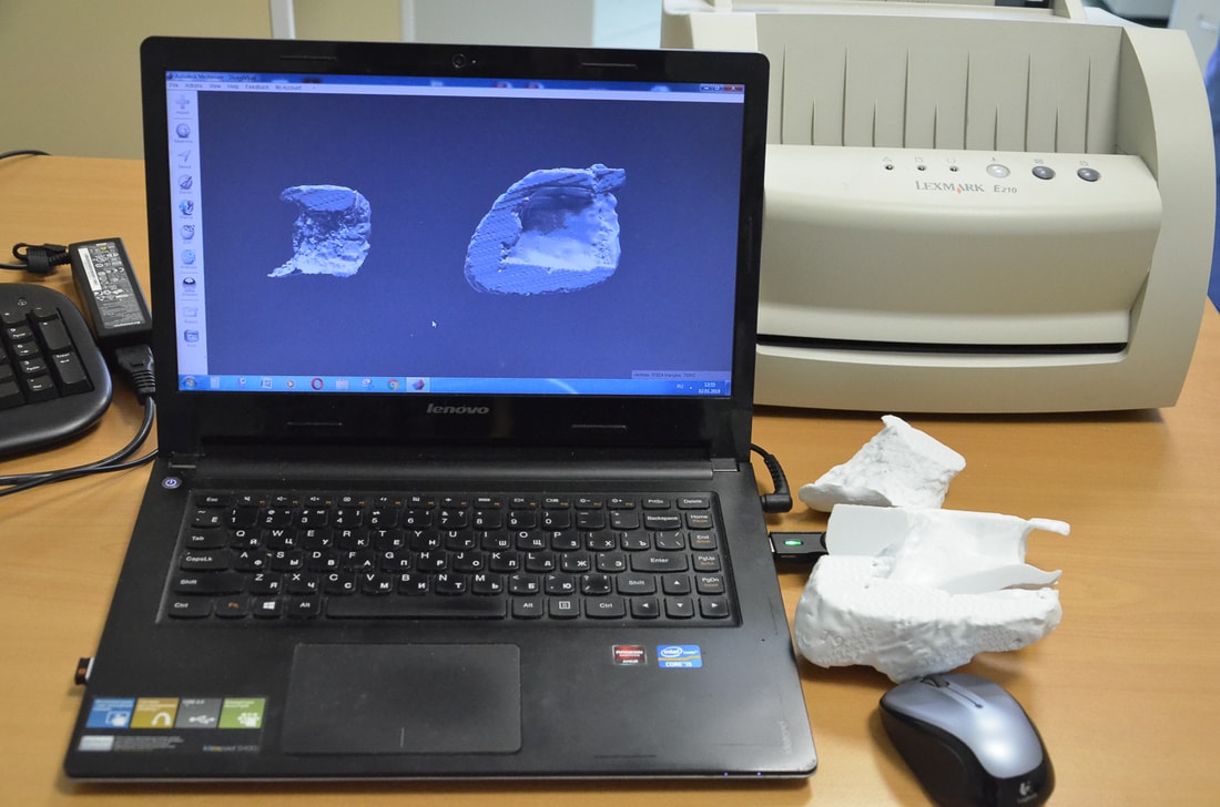 Иссеченными участками ткани хирург выстилает полости пластмассовой модели — так соблюдается расчетный объем ткани, подлежащей удалению. Там, где счет идет на миллиметры, гораздо нагляднее и важнее иметь под рукой реальную модель, нежели виртуальный (пусть и хороший) план операции в голове».