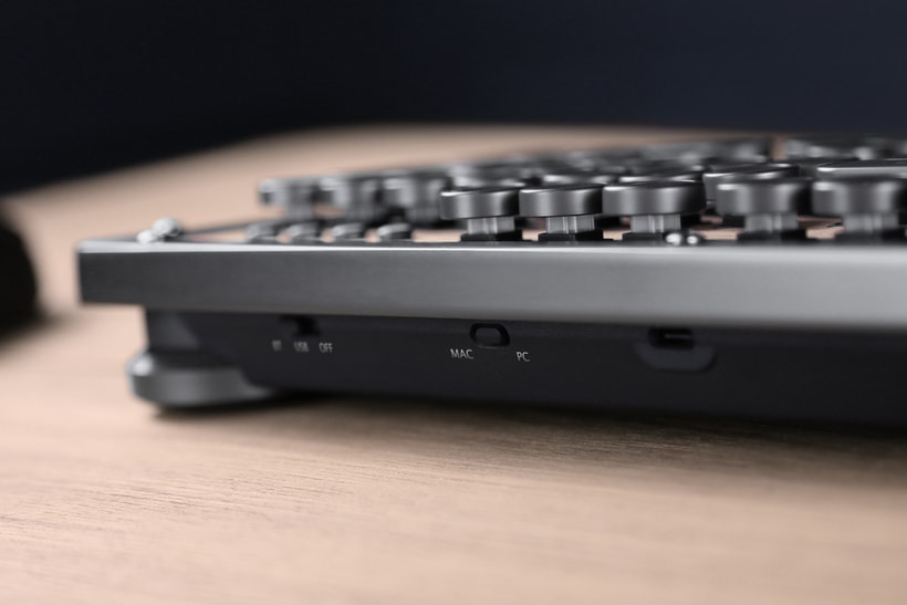 Беспроводной интерфейс реализован с помощью технологии Bluetooth. Питание клавиатуры обеспечивается встроенным аккумулятором на 6000 мАч. Производитель утверждает, что емкости хватит на год работы, если не включать подсветку. С нею время автономной работы сокращается до двух месяцев. Зарядка и работа в проводном режиме обеспечиваются портом USB-C.