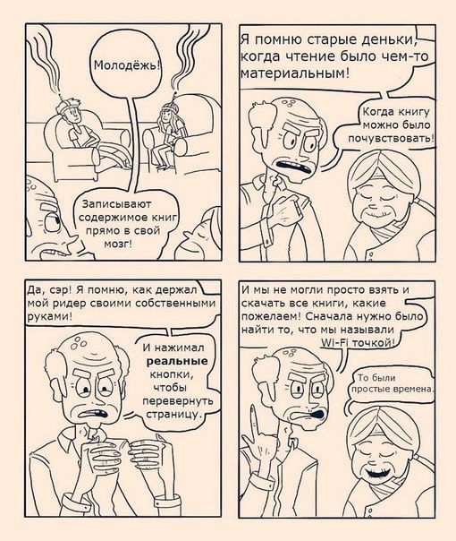 Из этого момента были взяты пять кадров, которые затем и превратились в своеобразный интернет-комикс, где батя и его сын спорят на совершенно разные темы: от «Звездных войн» и лучшего доширака до оценки картин дадаистов.