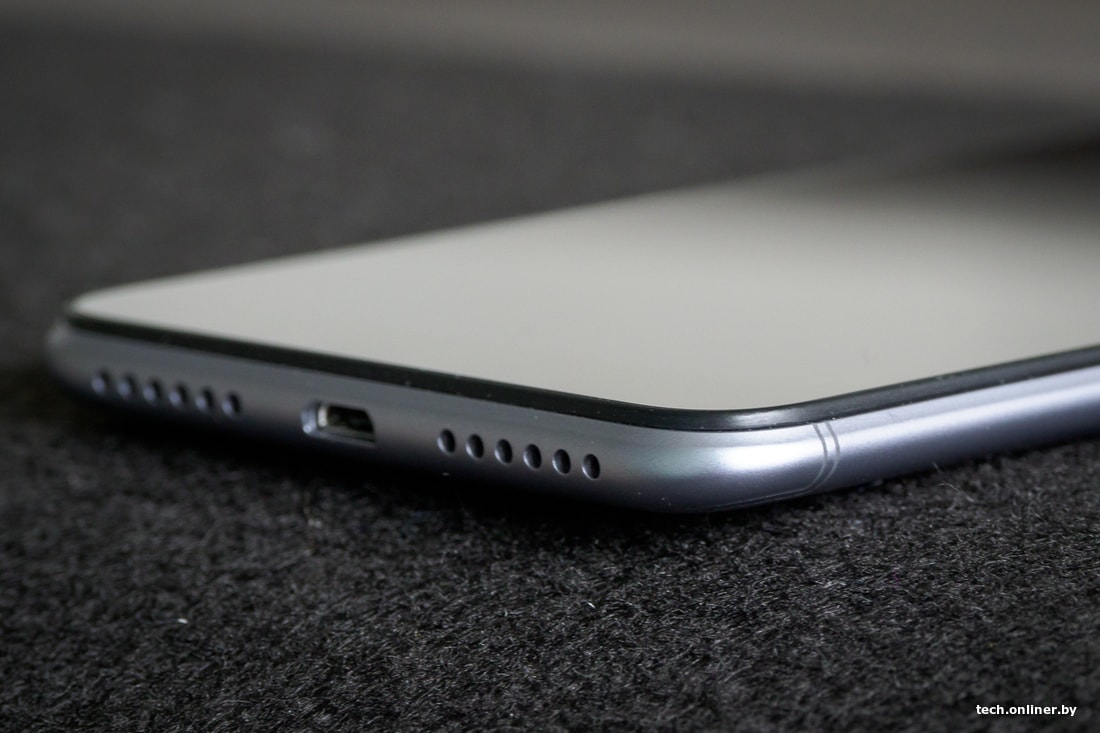 На нижнем торце по бокам от microUSB-разъема находятся симметричные решетки. За правой прячется единственный громкоговоритель, за левым — телефонный микрофон. Давно пора отказаться от microUSB, и тем более странно, когда производитель не решается на унификацию. Очевидно, проблема кроется не только в желании сэкономить, но и в устаревших дизайнах электроники, от которых не хочется отказываться.