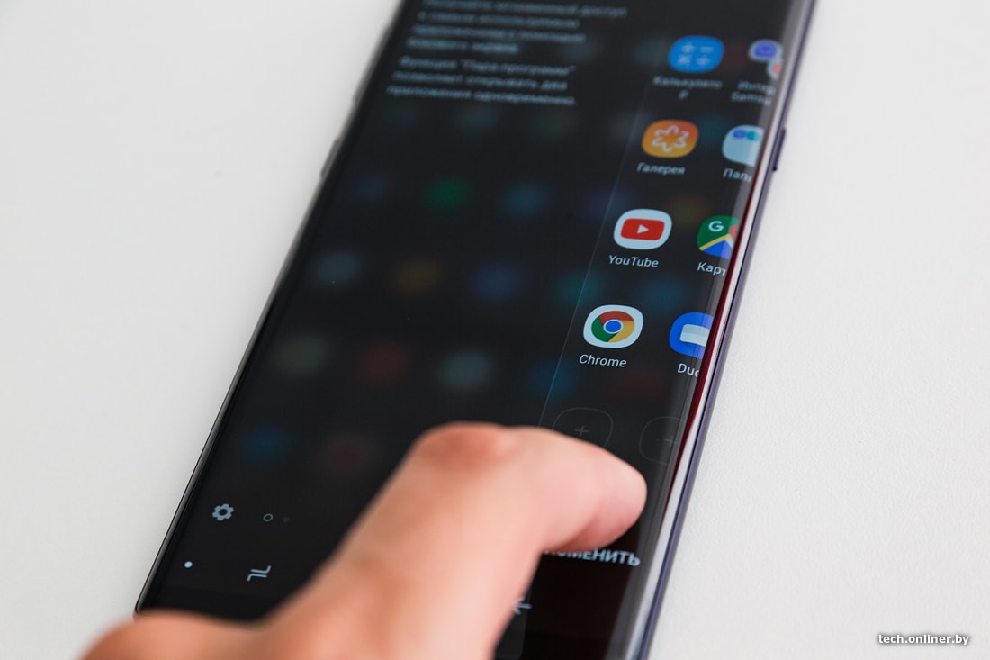AMOLED-экран в сравнении с предыдущей моделью увеличился незначительно — с 6,3 до 6,4 дюйма, его разрешение — 1440×2960 точек (около 516 ppi). Аналогичное разрешение у Galaxy S9 и S9+, а также Note 8. По умолчанию установлено меньшее разрешение, которое будет бережнее относиться к аккумулятору. К слову, экран относительно лицевой панели остался примерно прежним — чуть более 83%.