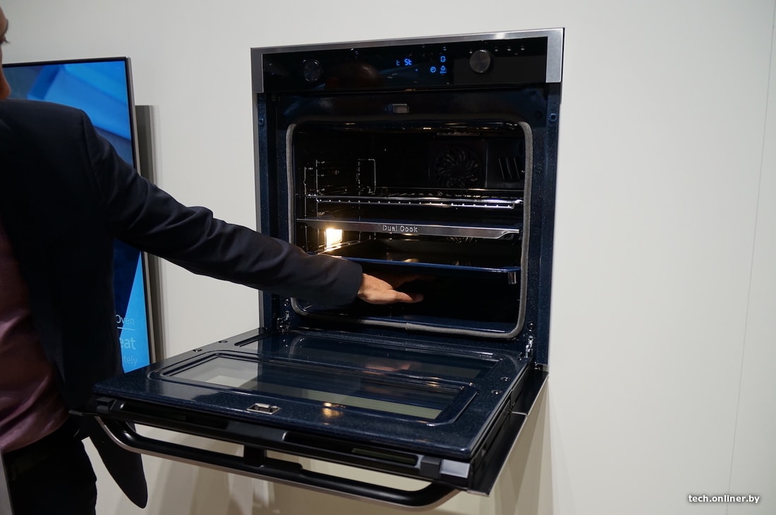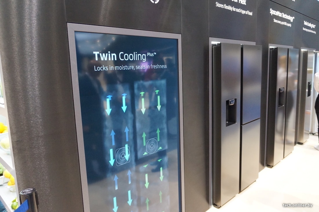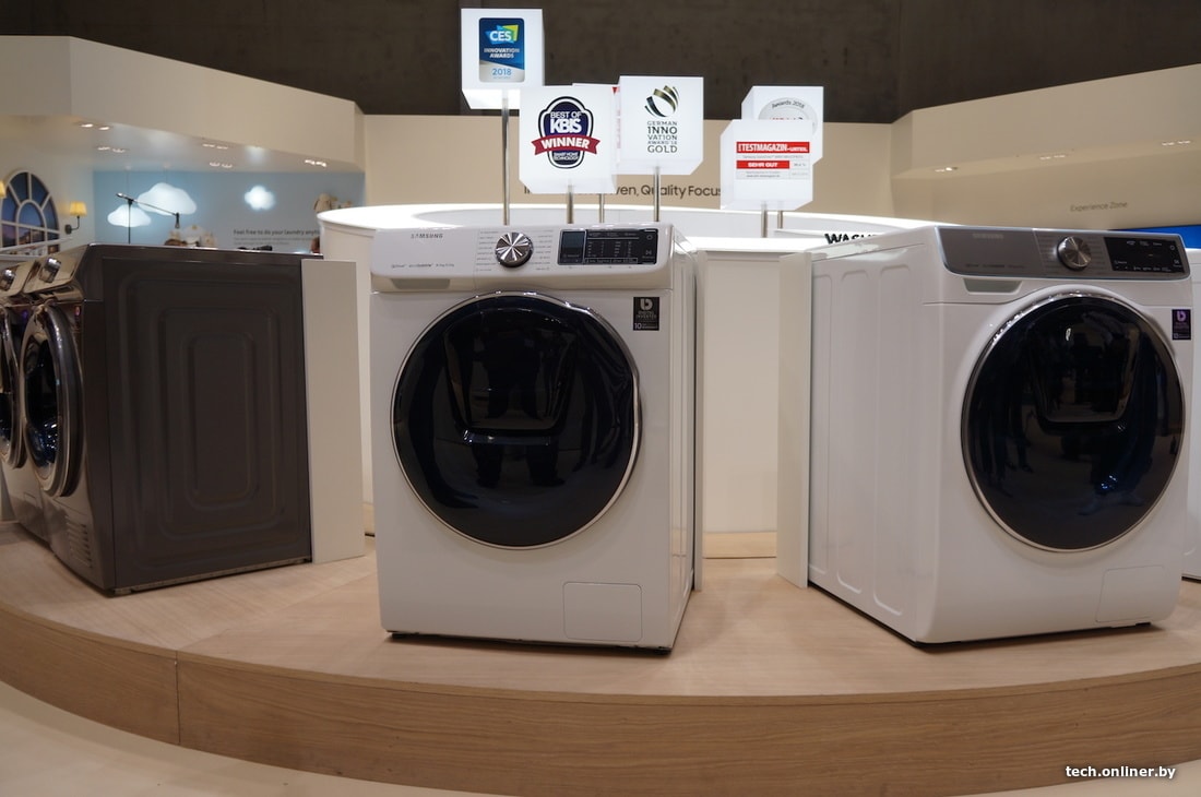 На стенде Samsung, кроме телевизоров, была масса бытовой техники: смарт-холодильники с раздельными зонами охлаждения, духовой шкаф с двумя независимыми областями работы (можно готовить одновременно блюда на разной температуре), а также умные стиральные машины. Вся техника доступна для управления со смартфона или планшета.