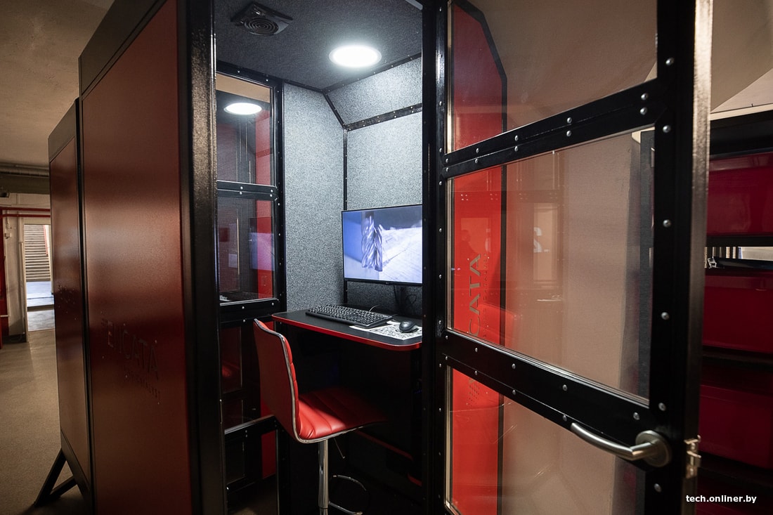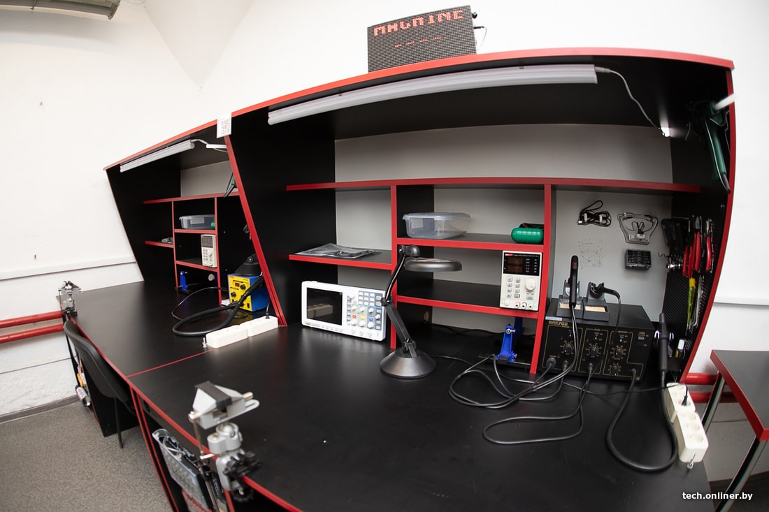 Помещение разбито на несколько зон: комната с точными электронными приборами, «шумовая» зона, демонстрационный зал и так далее. В коридоре стоят автоматы со всевозможными гайками, болтами и шайбами. Приобретать их можно за внутреннюю валюту, а она покупается за «крипту» или фиатные деньги. Некоторым университетам под студенческие проекты обещают гранты: команды смогут, по сути, работать в Make IT бесплатно.