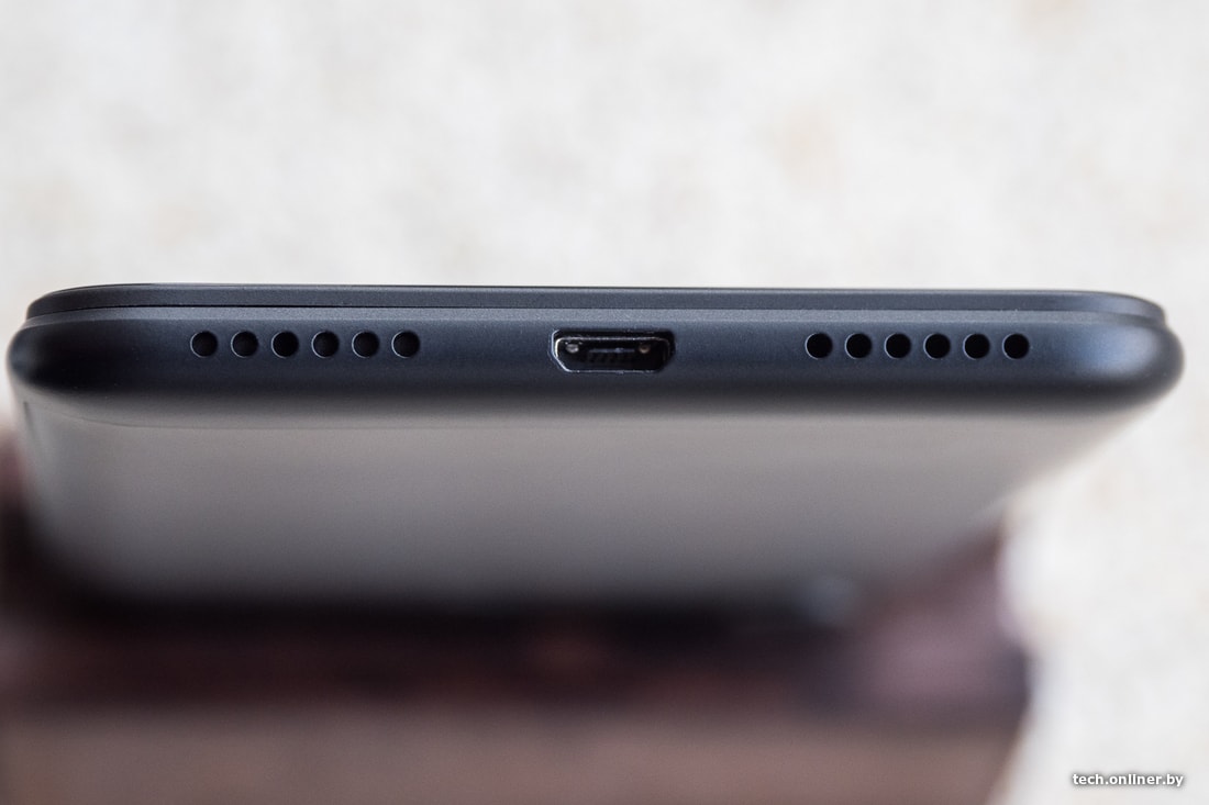 На нижнем торце Redmi Note 6 Pro имеется два «гриля». За одним скрывается разговорный микрофон (остальные отверстия запаяны), за другим — громкоговоритель. Между ними разместился разъем microUSB. У Nokia 6.1 Plus — две пластиковые вставки по бокам, обеспечивающие работу модулей связи, микрофон, USB Type-C и сдвоенное отверстие динамика. Не симметрично, но полностью функционально.