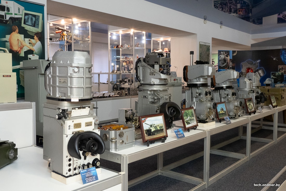 По продукции «БелОМО» за 60-летнюю историю предприятия не сразу поймешь, чем конкретно оно занимается: в выставочном центре лежат соковыжималки, антивандальные светильники (говорят, такие до сих пор в переходах Минска встречаются), запчасти для МАЗов и КАМАЗов, объективы для камер, оптика под космические спутники. А еще прицелы на муляжах штурмовых винтовок, военные бинокли и тепловизоры — причем нужны они совсем не для поиска зайца в лесах.