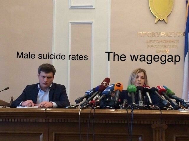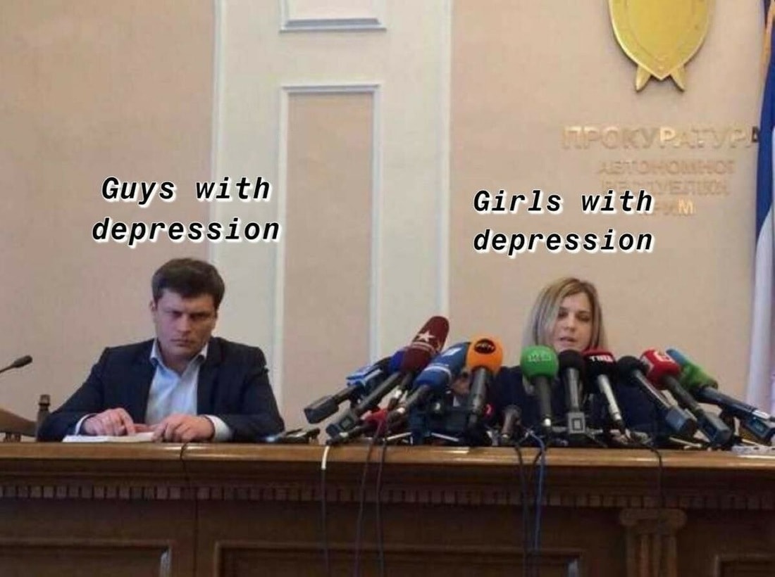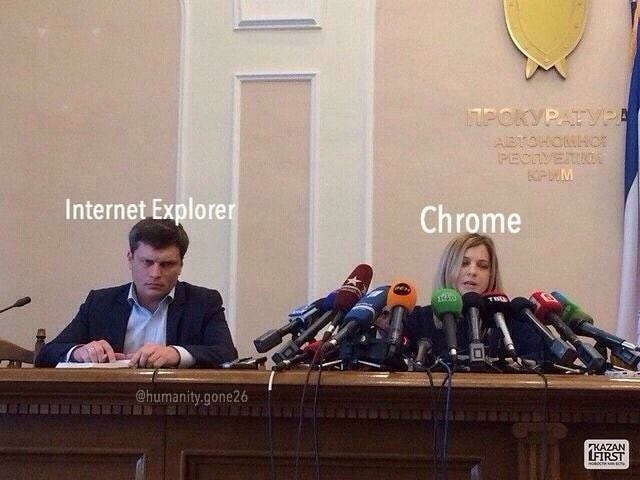 Спустя пять лет крымский прокурор Наталья Поклонская опять вернулась в интернет в качестве международного мема. На Западе почему-то всплыла фотография с пресс-конференции, на которой запечатлены прокурор и мужчина по соседству. Если вокруг Поклонской (ныне депутата российской Госдумы) можно насчитать с десяток микрофонов различных телеканалов, то у грустного мужика слева нет ни одного. Может, потому он и грустит, глядя из-подо лба?