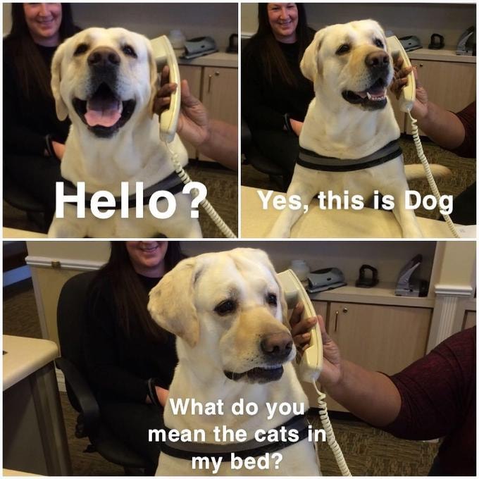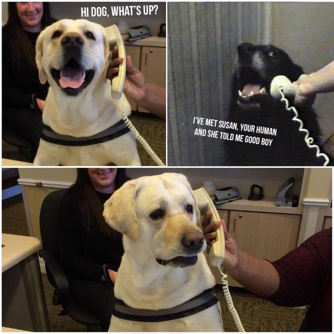 Ох, этот трехпанельный мем с лабрадором, который внимательно слушает голос из телефонной трубки, — самое милое, что случалось с индустрией мемасостроения за последние 30 дней. На первых двух картинках пес выглядит веселым, энергичным и жизнерадостным. Но только посмотрите на эту озадаченность в его взгляде во время заключительной сцены комиксов. Ну как же не воспользоваться такой переменой собачьего настроения — уж слишком много жизненных ситуаций ложится на вот такие внезапные и ошарашивающие звонки.