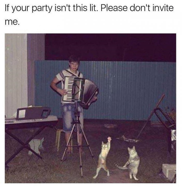 Да, мы знаем, что это баянистая пикча. Но ее стоит вспомнить благодаря ресурсу Memepedia, который вышел на героя оригинального снимка. Того самого, с аккордеоном в руках, под чьи аккорды пляшут два кота. Чаще всего эту фотографию в интернете можно увидеть с подписью «Если ваша вечеринка не похожа на что-то подобное, то даже не пытайтесь меня приглашать».