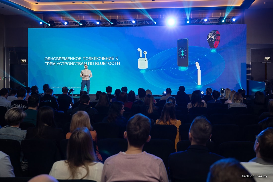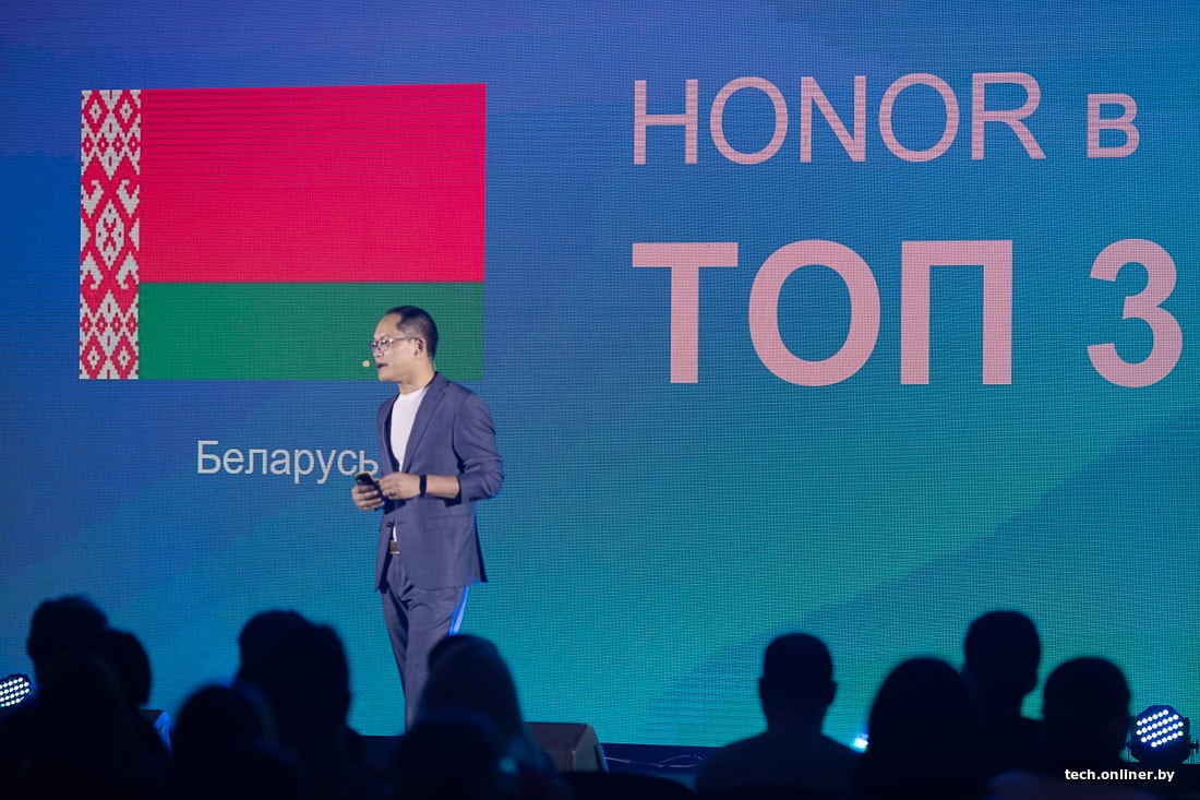 В ходе презентации представители Honor отметили, что по продажам в Беларуси бренд успел занять третье место по итогам 2018 года. Заодно публику развлекли песнями, танцами и кроссами Тимы Белорусских.