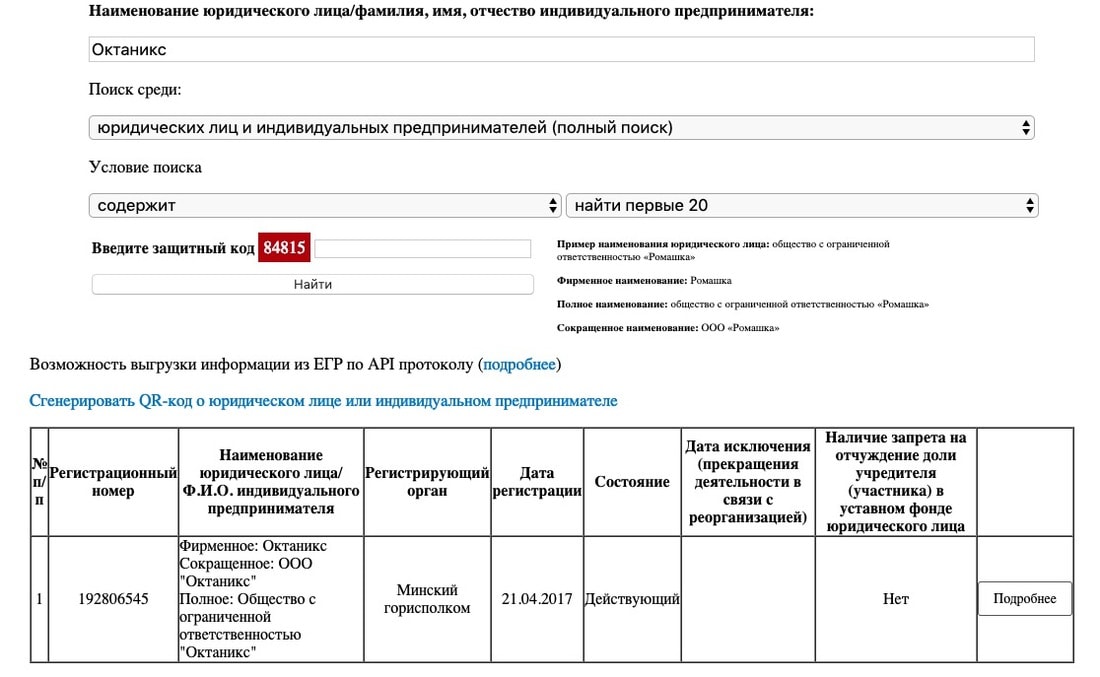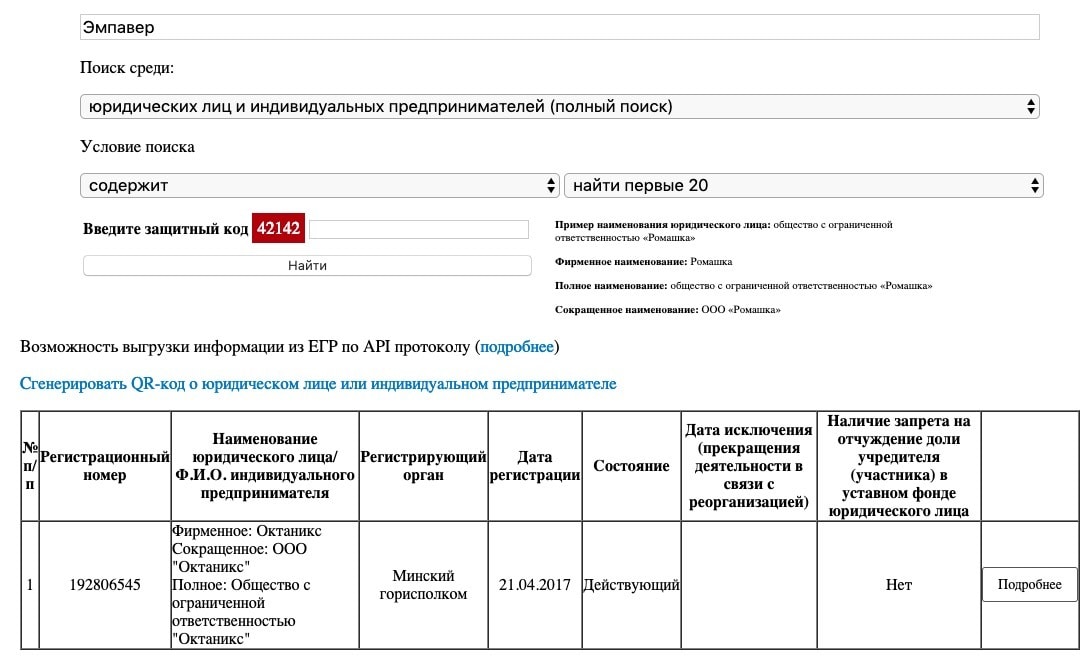 Краткий поиск «Октаникс» наталкивает на другое название — «Эмпавер». В Едином государственном регистре юрлиц и ИП запрос «Эмпавер» вообще приводит к информации об ООО «Октаникс» — возможно, фирма просто сменила название. Нам удалось найти контактный номер «Эмпавер», который указан как принадлежащий данному юридическому лицу — телефон, судя по всему, отключен.