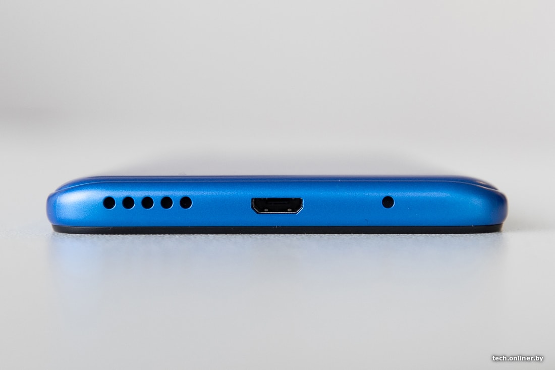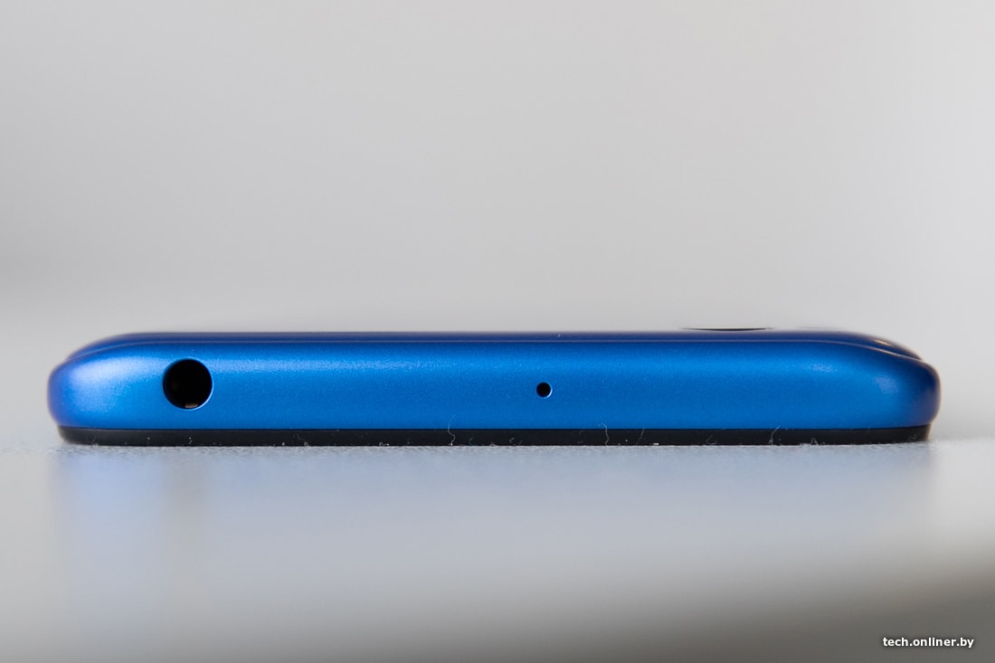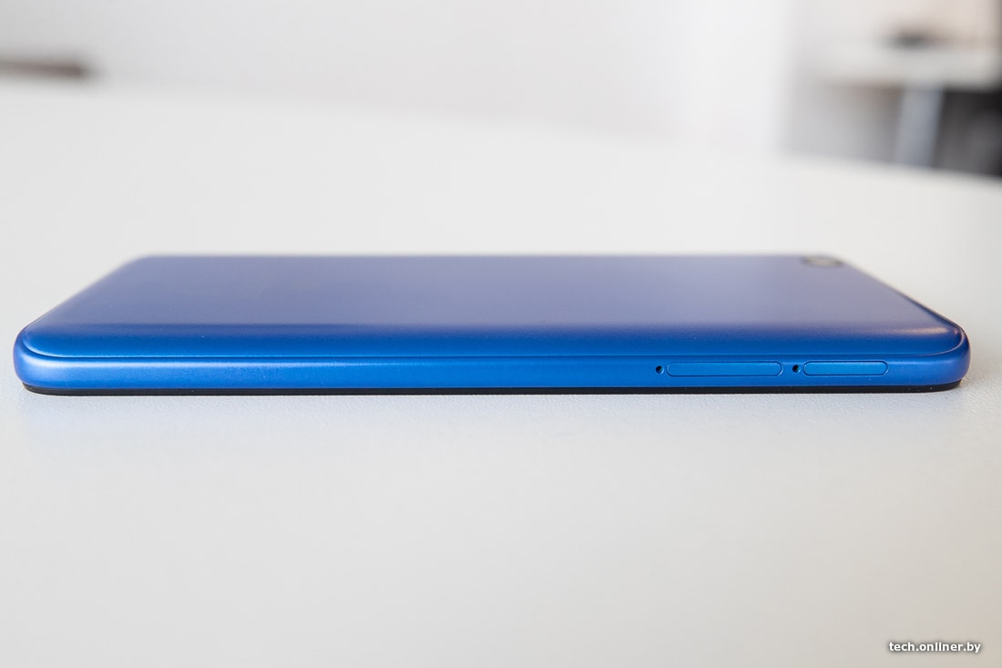 Нет, правда, что можно ожидать от супербюджетного смартфона? Уж точно не дизайнерские изыски. Внешность Xiaomi Redmi Go проста как пять копеек. Здесь даже про какие-то фирменные знаки принадлежности к бренду говорить не приходится. Перед нами реально прямоугольник, черный спереди и (в нашем случае) синий сзади.