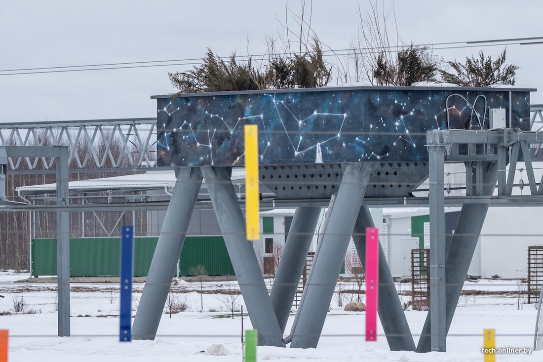 Вот и они — струнные дороги! Почти на расстоянии вытянутой руки! За три года с момента нашего прошлого посещения «потемкинская деревня» разрослась. На столбы навесили металлические конструкции, которые вроде как должны быть легкими, изящными и ажурными.