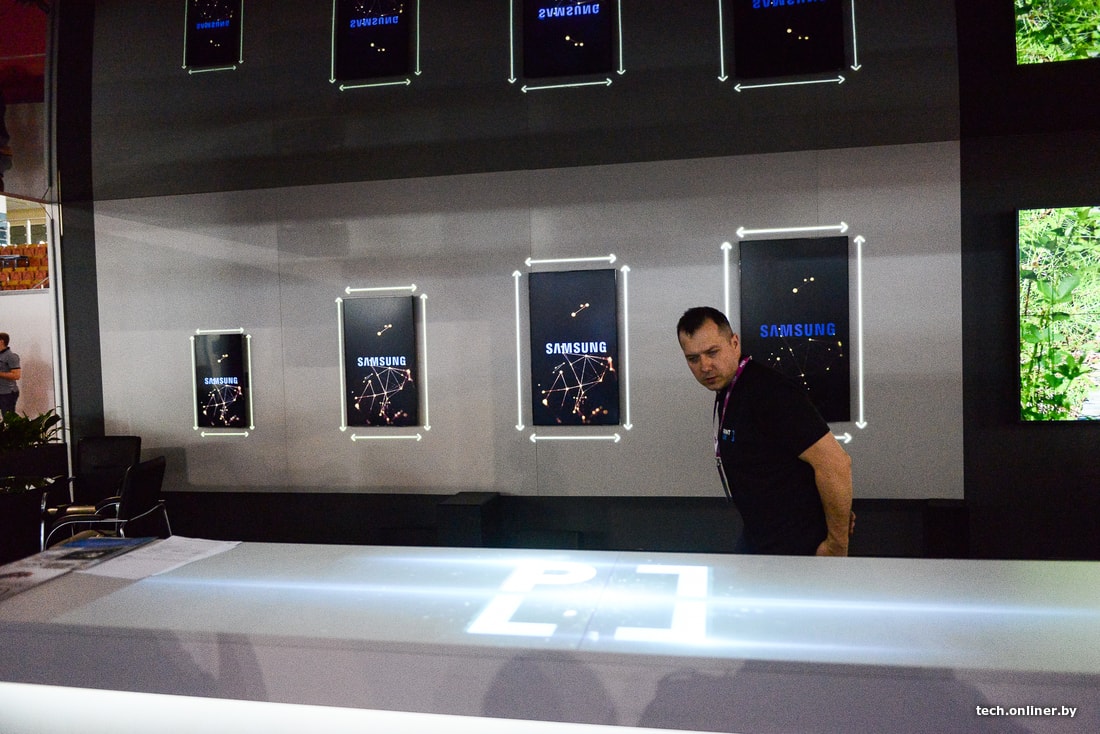«Горизонт» украсил свой стенд видеостенами из собственной продукции. Выглядит симпатично и достаточно технологично — система позволяет формировать из 55-дюймовых панелей экран разных геометрических форм. Придется бороться за долю рынка. «Витязь» продвигает зарядки для электромобилей. И электросамокат.