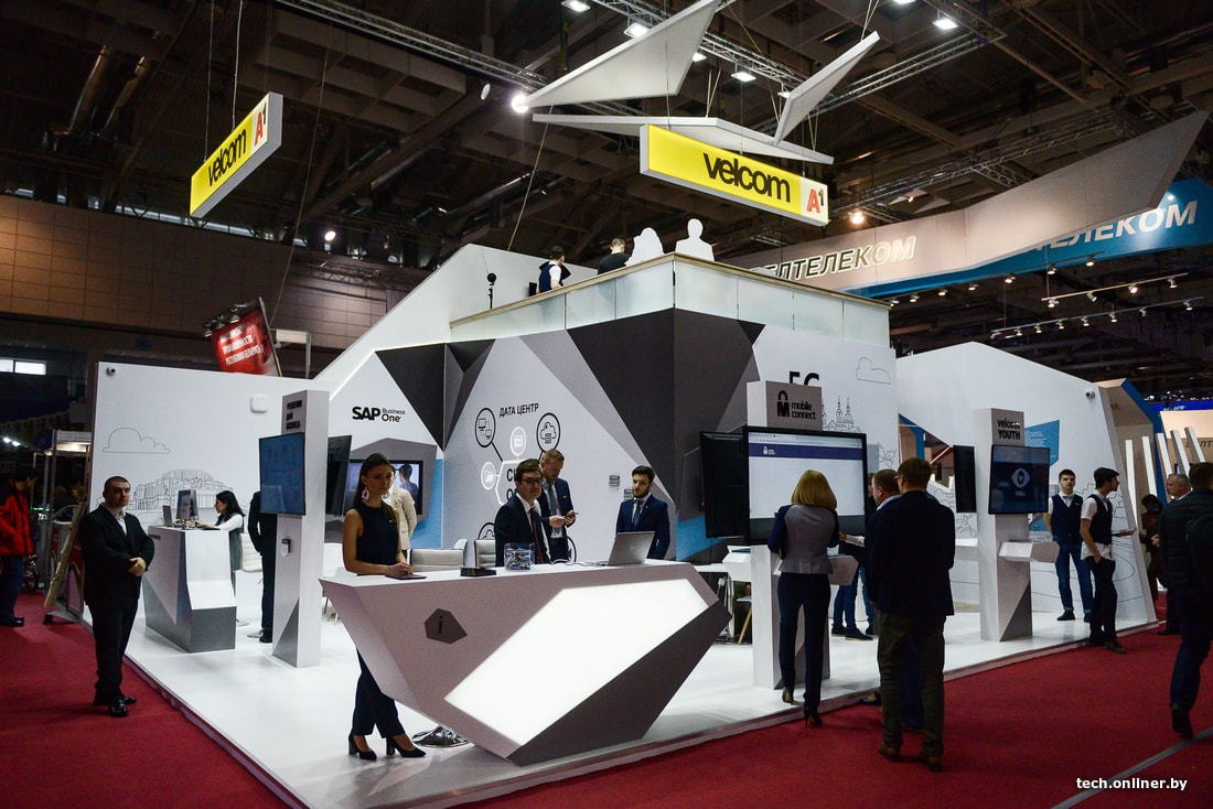 О сети нового поколения рассказывают и на стенде инфраструктурного оператора beCloud. Здесь же можно запустить тест скорости на базовую станцию 5G, которая находится за пределами выставочного павильона на улице. Да, скорости впечатляющие: 3,2 гигабита на загрузку и 320 мегабит на отдачу, приемником выступает специализированная точка доступа — по габаритам она намного больше обычной.