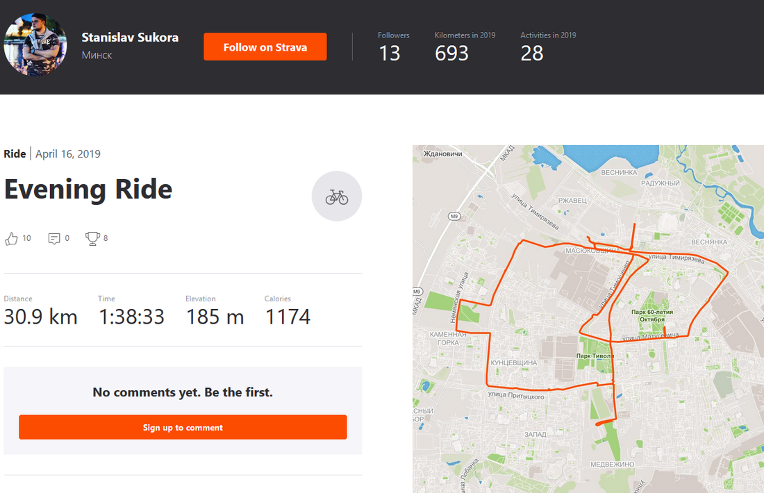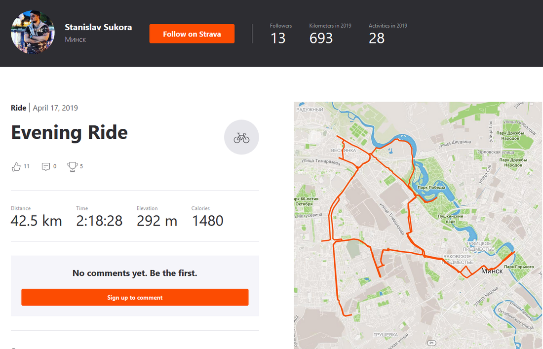 Айтишник состоит в клубе велосипедистов EPAM Biking Club. Инициатива появилась в апреле, к ней присоединились более полутора сотен сотрудников компании. Судя по таблице лидеров, Станислав поставил рекорд на прошлой неделе — тогда он проехал 156 километров.
