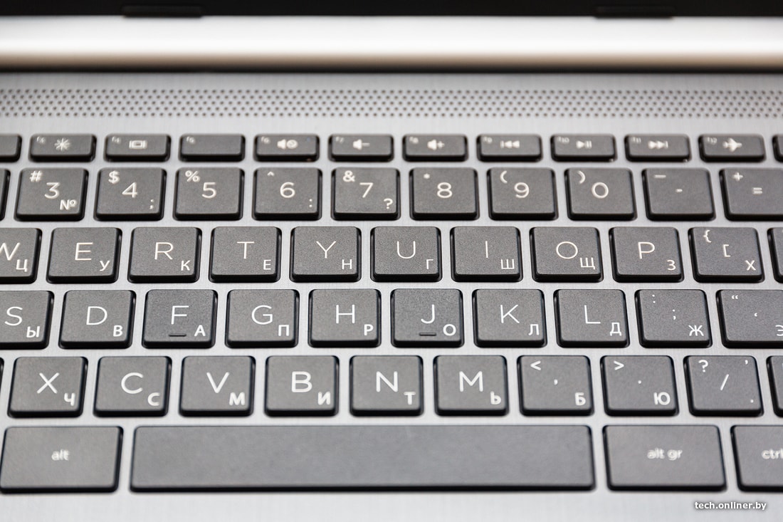 Клавиатура приятная, корпус при печати не прогибается. На гладкой поверхности узкого тачпада легко оперировать жестами, а выделенные клавиши с коротким ходом быстро реагируют на нажатия. Навигационные кнопки вынесены в отдельный ряд в правой части. Теперь это будет трендом для большинства ноутбуков HP. Раздражают только уполовиненные стрелки «вверх» и «вниз», при том что другие стрелки нормального размера. С кнопкой F1 совмещен бестолковый вызов справки. Вот зачем для этой функции отдельная кнопка — неизвестно. Если только случайно нажмешь, когда потянешься к Esc.