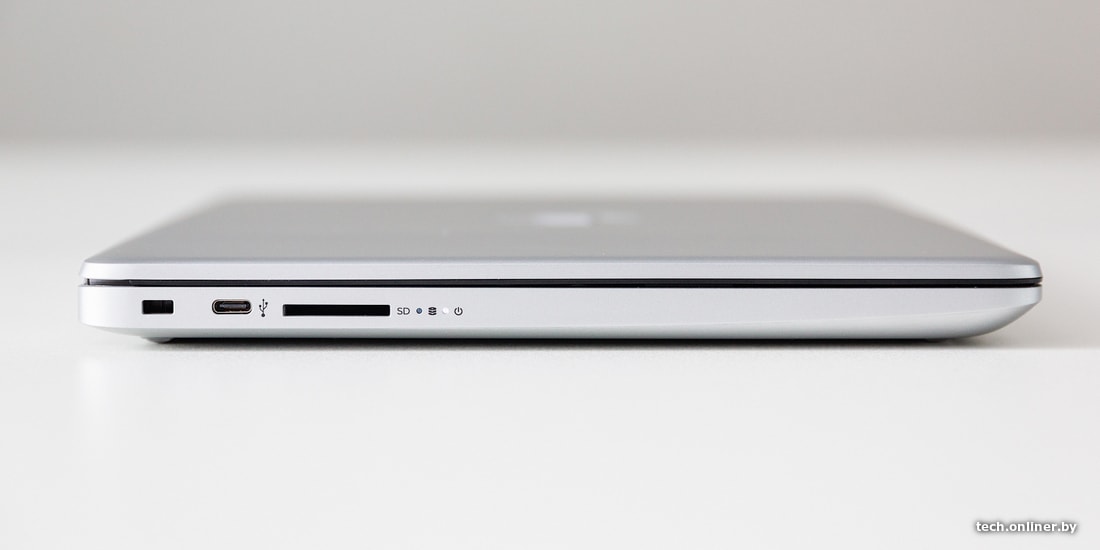 Черный с эффектом вертикального браширования корпус остался без подсветки клавиш, цифрового блока и каких-либо функций безопасности. Зато тут есть полный набор портов и интерфейсов! Для подключения внешних устройств в ноутбуке предусмотрено два USB 3.0 порта, один USB Type-C, HDMI и слот для карты памяти. В тонком корпусе нашлось место для сетевого порта с хрупкой защелкой для фиксации кабеля. Грустно, что ноутбук не поддерживает свободные частоты Wi-Fi на 5 ГГц, а только 2,4 ГГц. Bluetooth-наушники и мышки соединяются с ноутбуком без проблем.