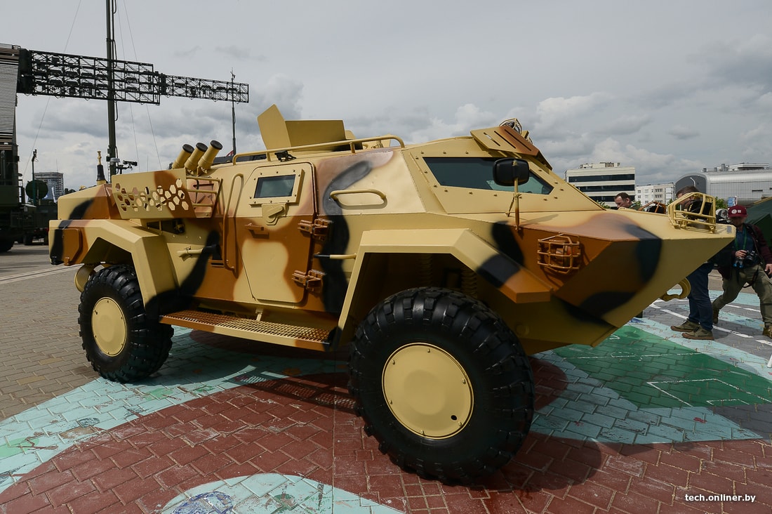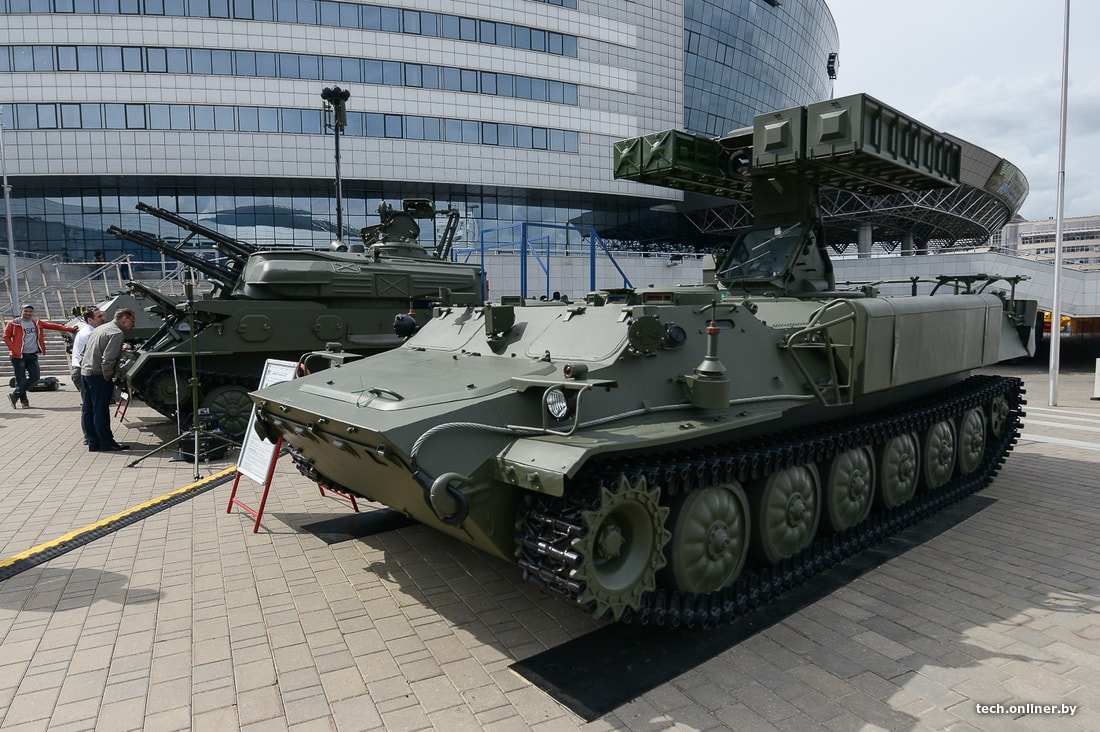 Те, кто бывал на прошлой выставке либо просто знаком с военной техникой, наверняка увидят здесь много знакомых силуэтов, но есть среди них и новинки. К ним, например, относится ЗРК средней дальности «Бук-МБЗК», который показали в Минске впервые. Он разработан белорусским предприятием «ОКБ ТСП», где машину считают не уступающей по огневым и маневренным возможностям современным аналогичным ЗРК средней дальности при более низкой цене. Система способна обнаруживать истребители на расстоянии до 130 км.