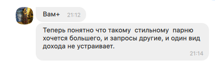 — Понятно, что такому стильному парню хочется большего — и запросы другие, и один вид дохода не устраивает.