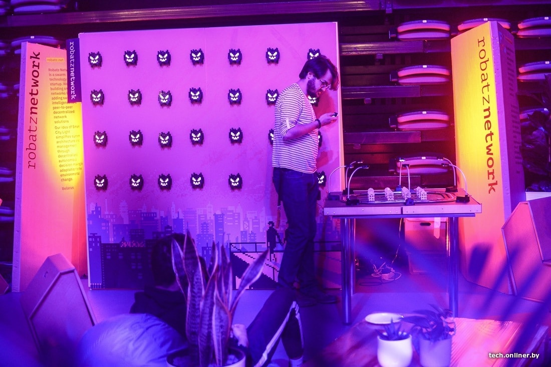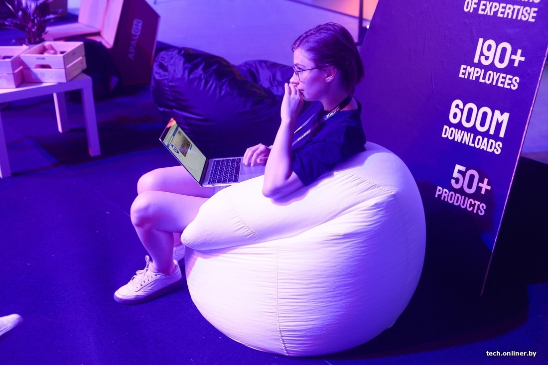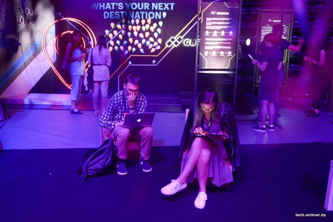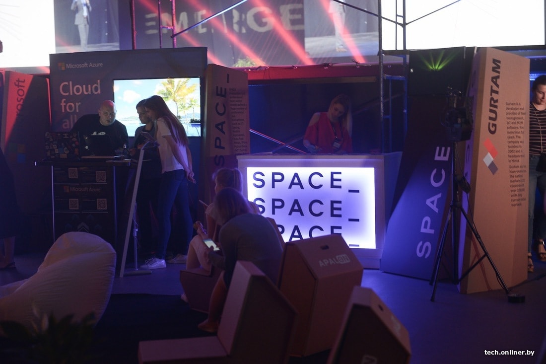 EMERGE, как и раньше, собрала айтишников и всех, кто хоть как-то причастен к этой сфере. Рядом с крупными компаниями-партнерами вроде Gurtam и Apalon были маленькие стартапы, работающие в совершенно разных сферах. К примеру, один проект на Startup Alley занимается биологически чистыми добавками для кур на птицефабриках, а неподалеку от него находился стартап, который делает робота по игре в бильярд.