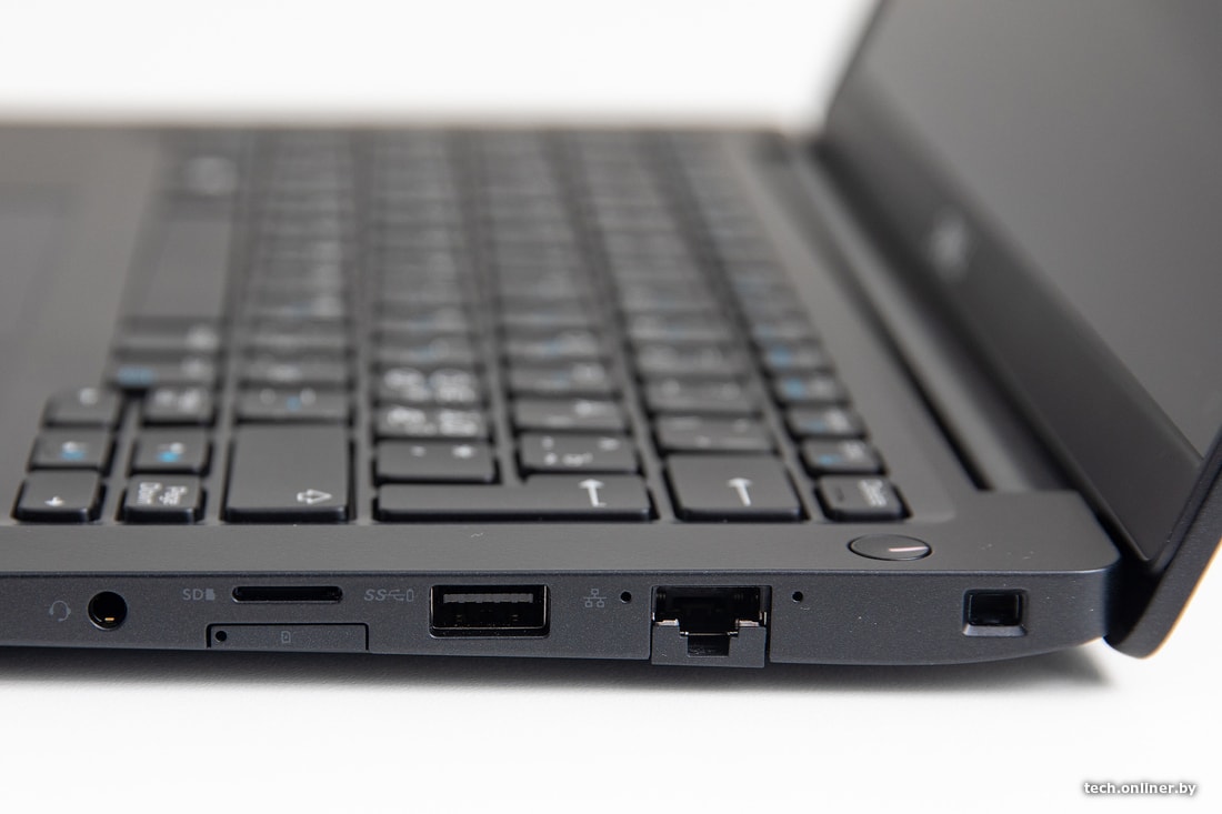 В Dell не поленились добавить в этот компактный ноутбук разъемов: два USB 3.0 и один USB C с поддержкой Thunderbolt 3, слот для карт microSD, считыватель смарт-карт, аудиоразъем, HDMI и Ethernet. Наличие последнего особенно радует, учитывая, что, например, в последних моделях Lenovo ThinkPad его нет. Защелка Ethernet-порта выглядит хрупкой, поэтому в режиме «подключил в начале дня и выключил после работы» она может долго не прослужить.