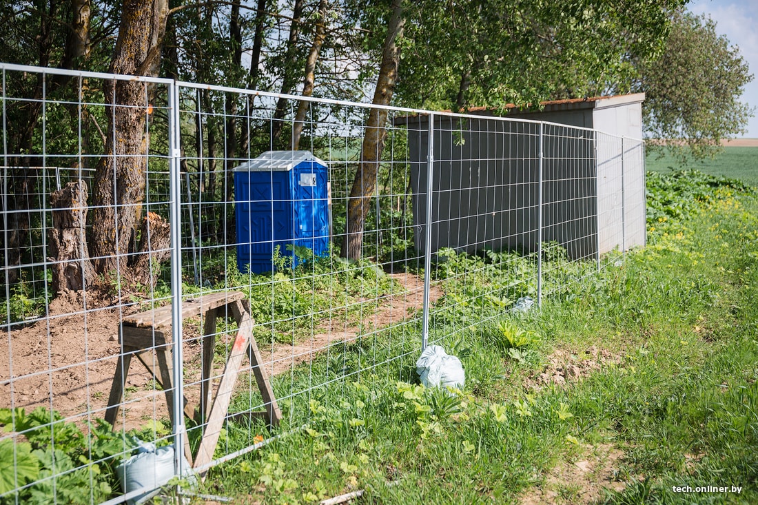 «От забора — 7 метров. Если вышка будет падать, она заденет дома рядом. Мéста же вокруг деревни полно, это не город. От нее разлет наледи — 13 метров, а огорожена 7×7. Зато таблички есть», — рассказывает мужчина. Добиваясь переноса железной конструкции (еще до ее появления), житель деревни Чики побывал в изрядном количестве кабинетов — не каждый белорус окажется способным на такое.