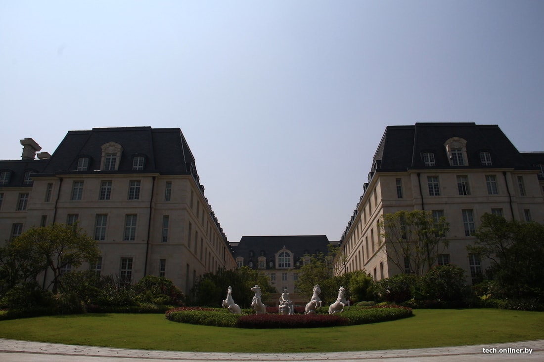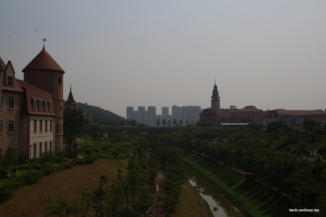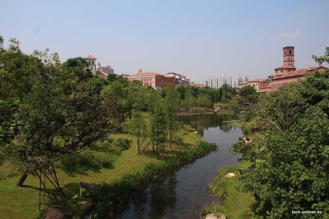 Сперва вид кампусов вызывает диссонанс. Во-первых, архитектура совершенно не похожа на китайскую. Во-вторых, почему вон там что-то типа Карлова моста, а на одной из станций явно угадываются мотивы итальянских городков?